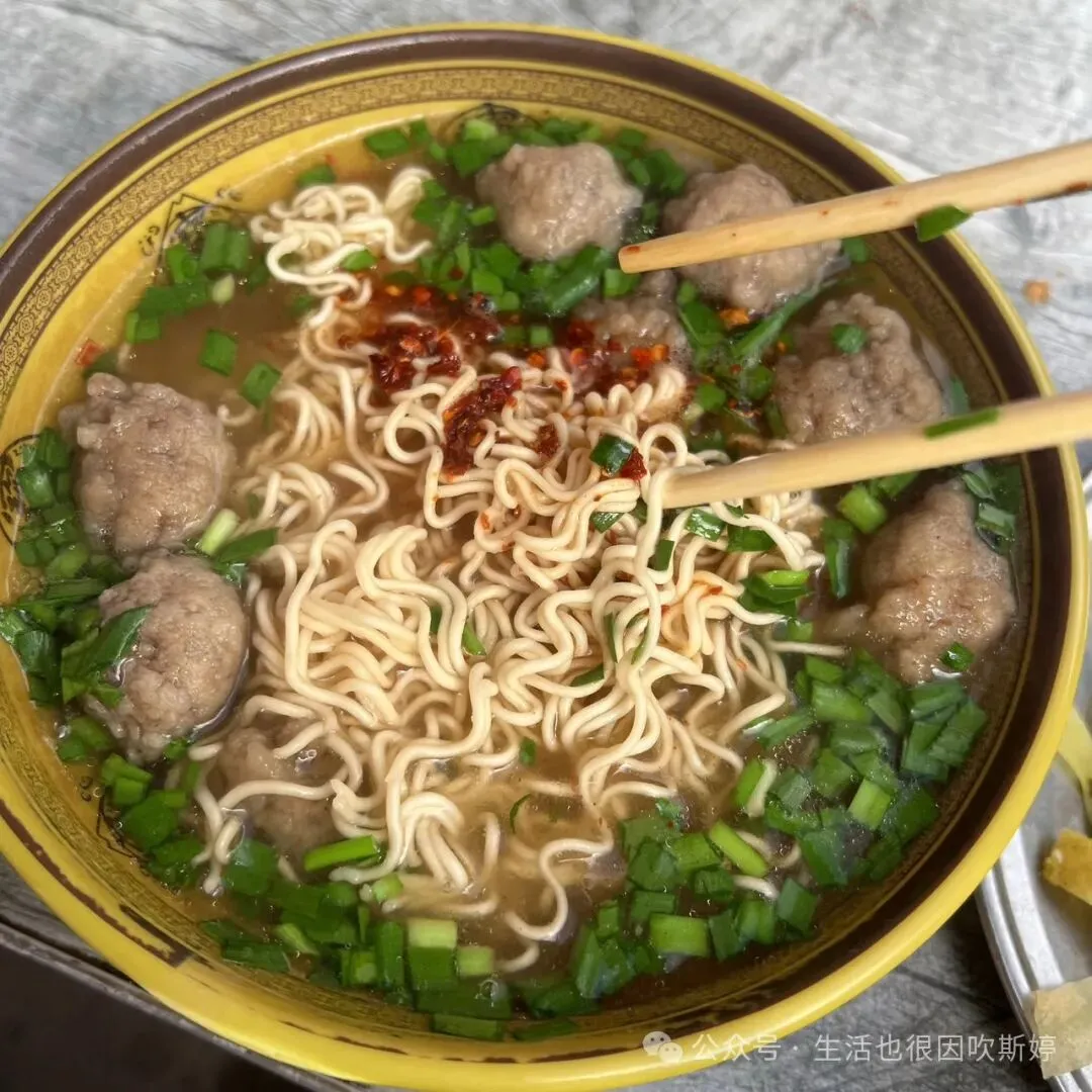 在🐴的家所在的小镇上,有几家一定要吃的小吃店:陕西米线、屠王大骨头、景明肉丸、大辛庄肉丸杂碎。。。但这次回去,时间匆忙就只吃了一家早餐,丸子汤➕油饼➕羊肉包子。最近发现ss真的很爱半熟的泡面,以至于我后知后觉之前忽略很久的事:原来丸子汤很多人也会加一份煮的很生的泡面。于是我今天也尝试加了一份。。。嗯。。。行吧!!果然是不行呢!不喜欢就是不喜欢,从小喝都不加,是有理由的。嗯!