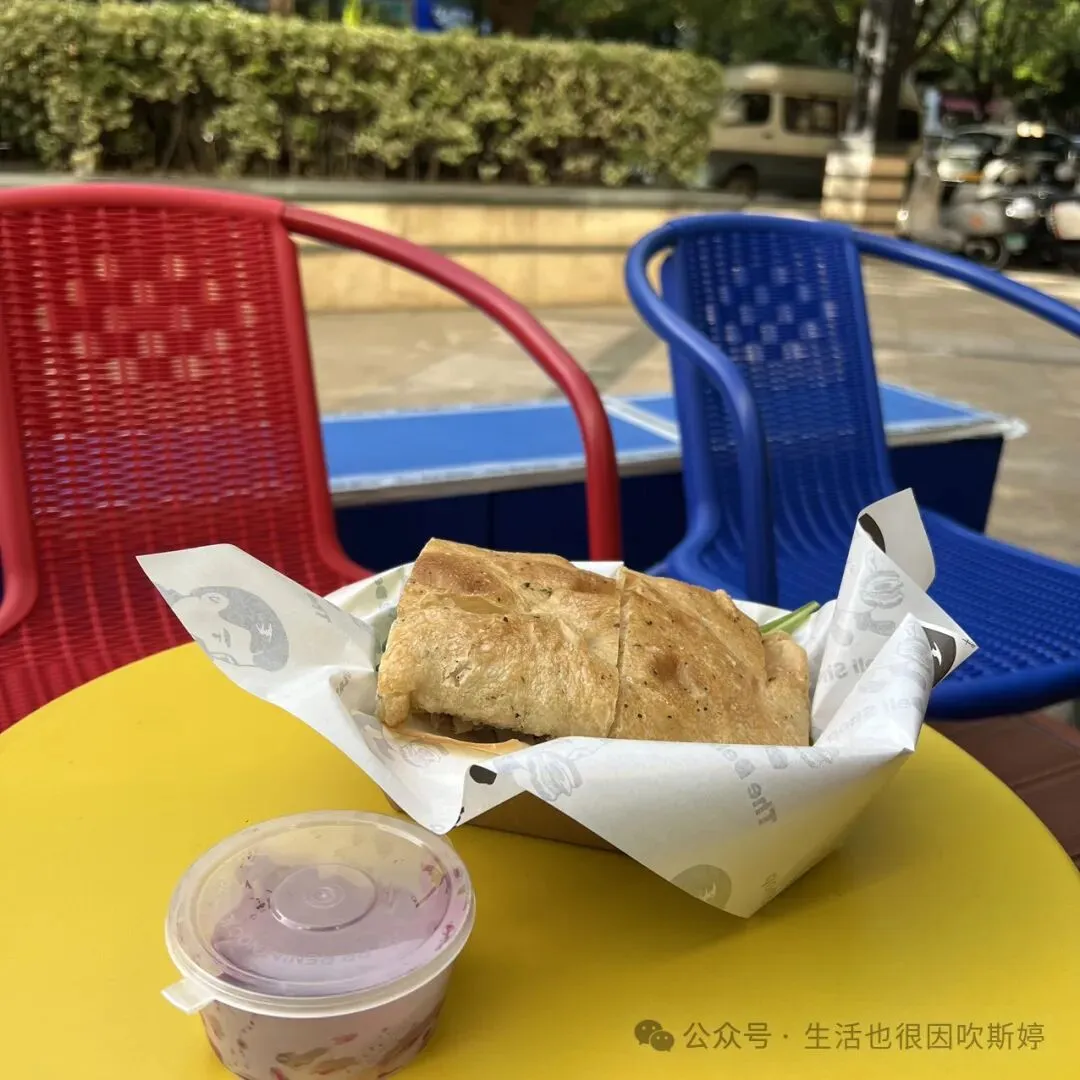 不用特别搜寻,在郑州的街头只要有鸡蛋灌饼、肉夹馍或是烤冷面这类小吃的附近,基本都有煎饼果子,无非是山东杂粮煎饼派系或是软面煎饼果子派系,也说不上来它的味道能有多神,非得去哪家哪家?自己家院门口,公司楼下,学校门口的,基本就是最好吃的了。一个煎饼果子能有什么期待?主要是便宜,还记得大学的时候,每次去郑大总要吃荷园那个酱放巨多,无论早晨、上午、中午、下午、晚餐时间甚至晚上永远都有人在买的煎饼果子,离开学校真的很少再想起或者提及这个食物。但自从在江西吃到加沙拉酱、芝士的连锁店煎饼,以及在街头招牌很大、人挺多、做很慢、可以加香蕉(刚看到我以为像可甜可咸的可丽饼一样加糖加炼乳呢,还想说江西真是太超前了,直到我看到葱花香菜辣椒酱放进去,我的嘴巴控制不住的张开了😲)、素的也要9块的煎饼,即使是在大学附近,最少也要6块的价格,让我开眼!让我崩溃!