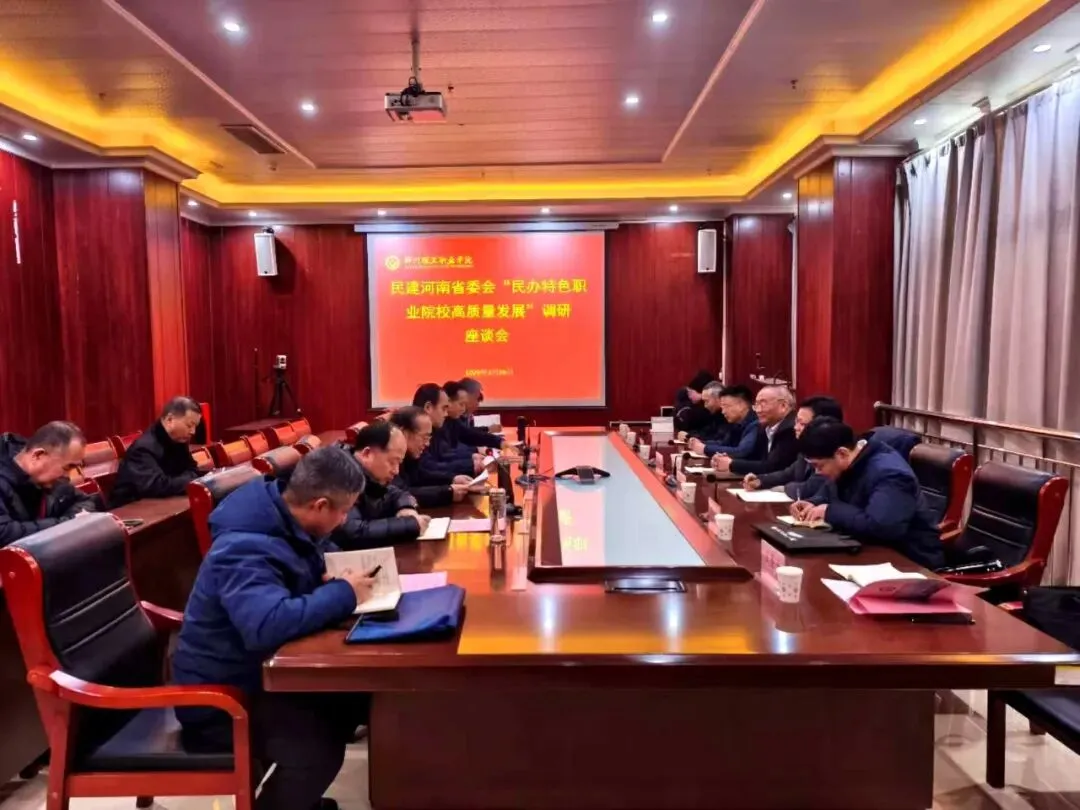 为系统把握我省民办特色职业院校发展建设情况,为民办高校高质量发展把脉定向、建言献策,近日,民建河南省委会主委梁留科等一行7人赴郑州理工职业学院开展专题调研。郑州理工职业学院理事长马振红,校长张久铭,党委副书记王凌彬,副校长赵金安,纪委书记、教务处长李庆标,校长助理袁桂娥等校领导及相关部门负责人陪同调研并参加座谈。