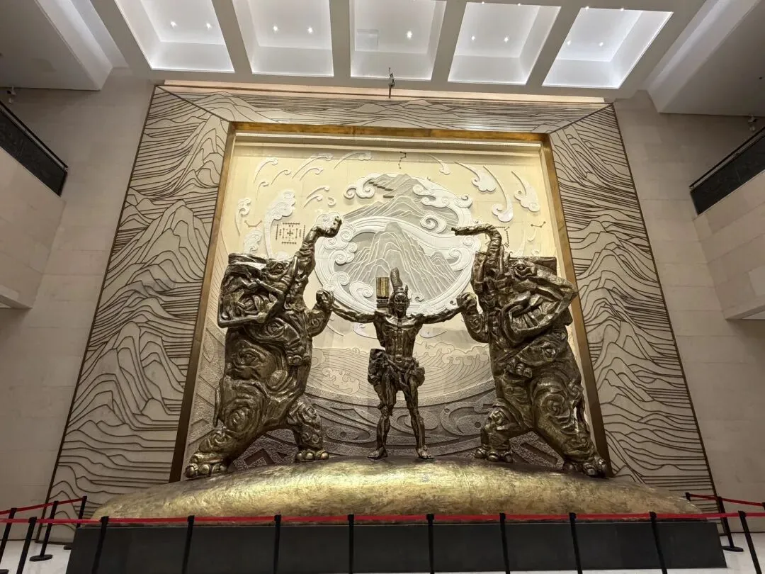 走进博物院一楼中央大厅,迎面是单人推双象的雕塑,“豫”的右面是“象”,河南古称“豫州”。