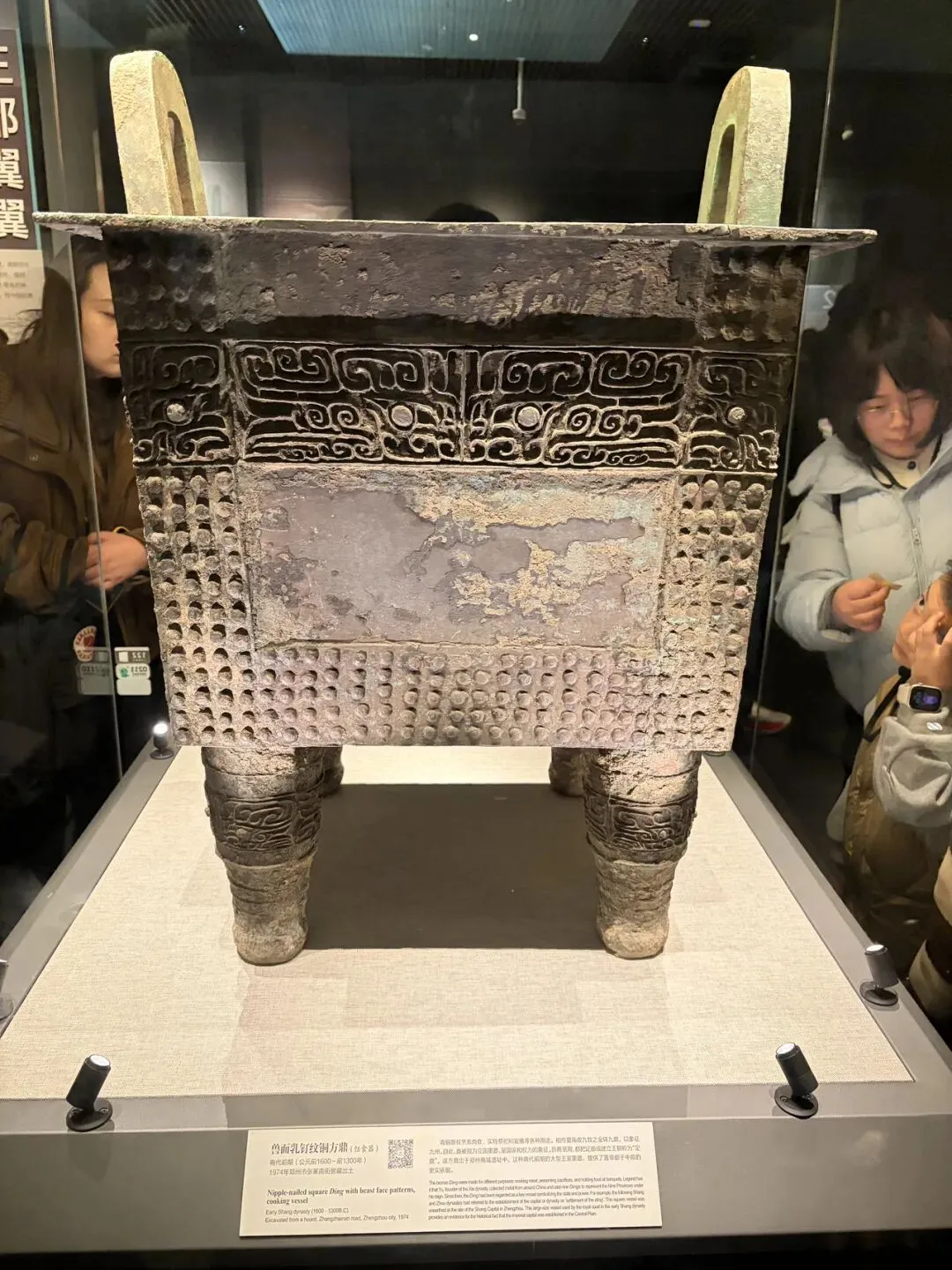 2、商乳丁纹青铜方鼎(一楼2号展厅),也叫杜岭方鼎,它的出土,让郑州挺进了八大古都之列。