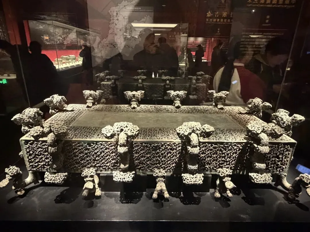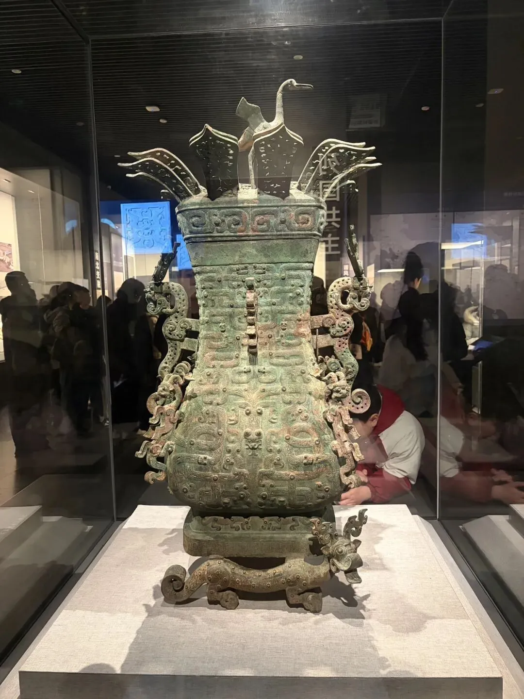 博物院里挤满了来研学的小学生,叽叽喳喳,每个展柜前都围得水泄不通,恐怕是不能安心地看完每一件宝物了,先寻找九大镇馆之宝吧。