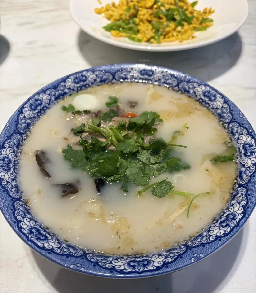 9、汝窑天蓝釉刻花鹅颈瓶(三楼10号展厅),质地温润如玉,是至今发现的唯一一件北宋汝窑天蓝釉刻花瓷器,为汝窑瓷器的传世孤品。来一趟郑州,又怎么不吃烩面?连续吃两顿烩面,又是怎样的热爱!先去了这家“裕丰源”