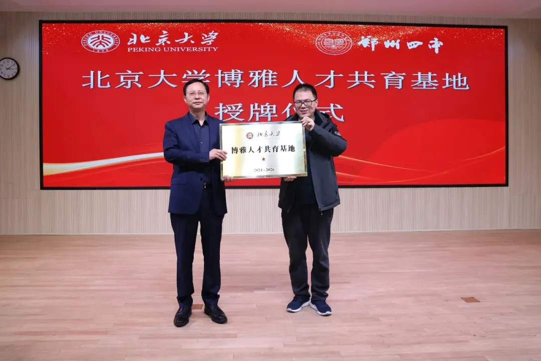 2023年12月,郑州四中入选北京大学博雅人才共育基地。2024年3月,2026届博雅班授牌设立。郑州四中博雅班呈现出双高共育、双基共通、双学共进的特色: