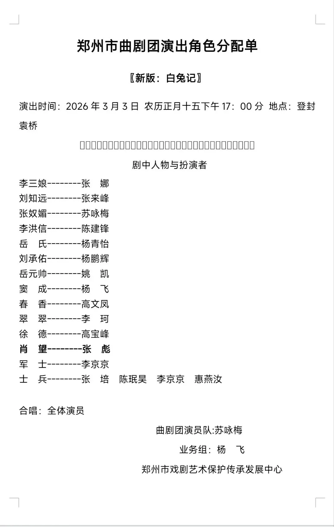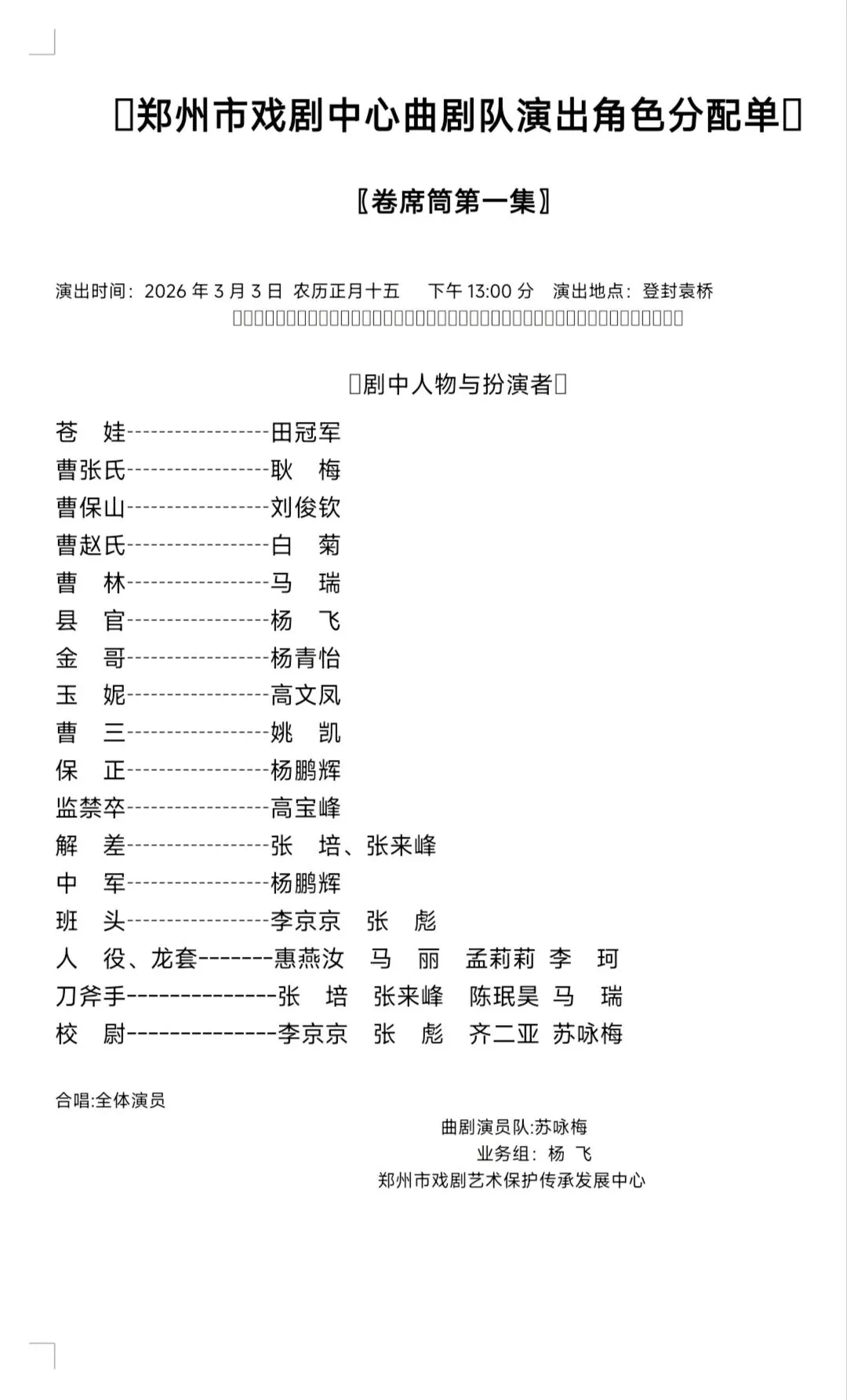 郑州市戏剧艺术保护传承发展中心2026年3月3日曲剧演出信息
