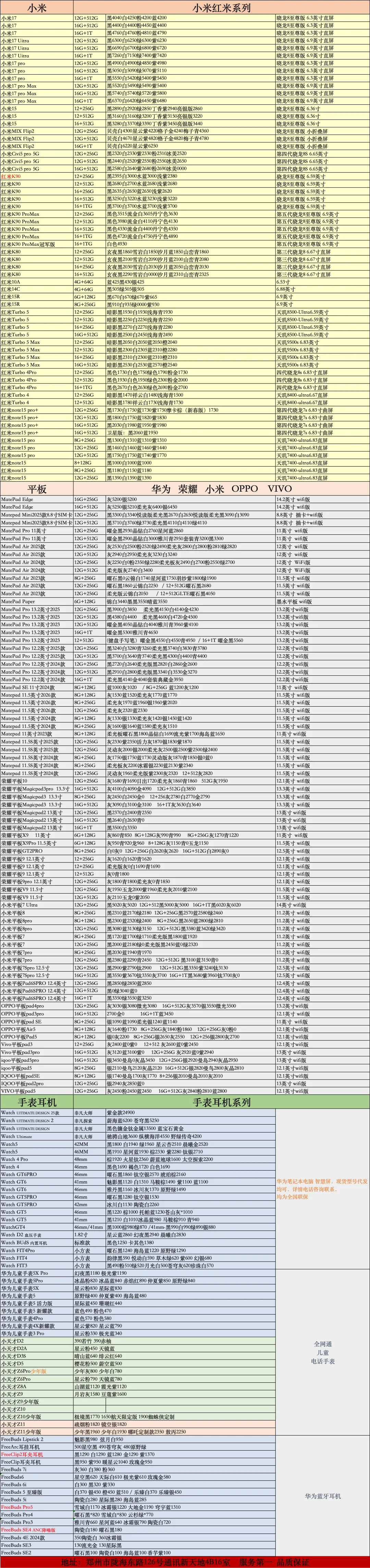 >郑州睿星通讯03月02号报价