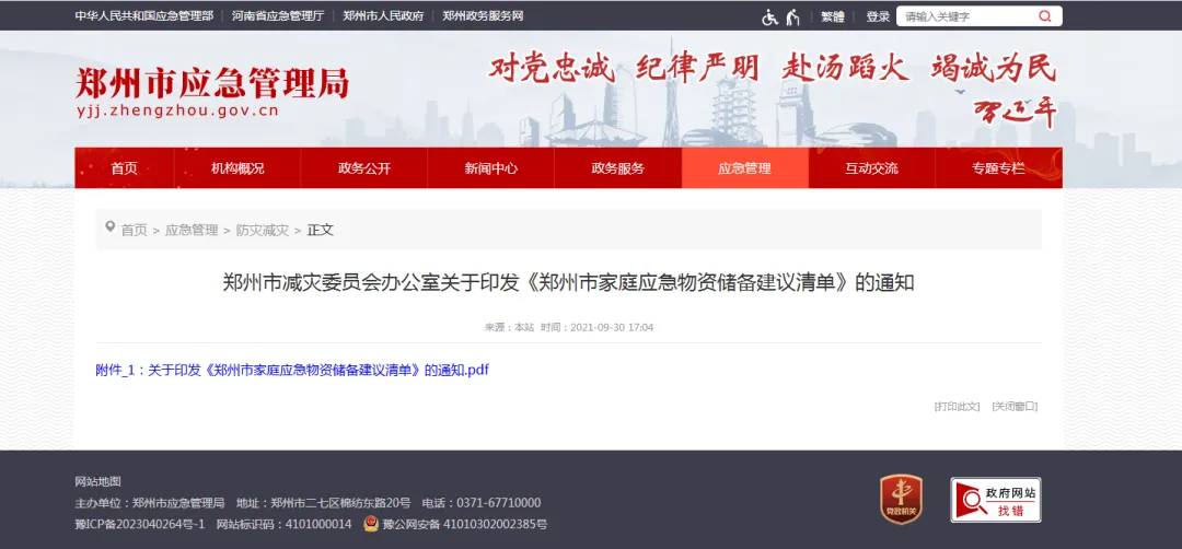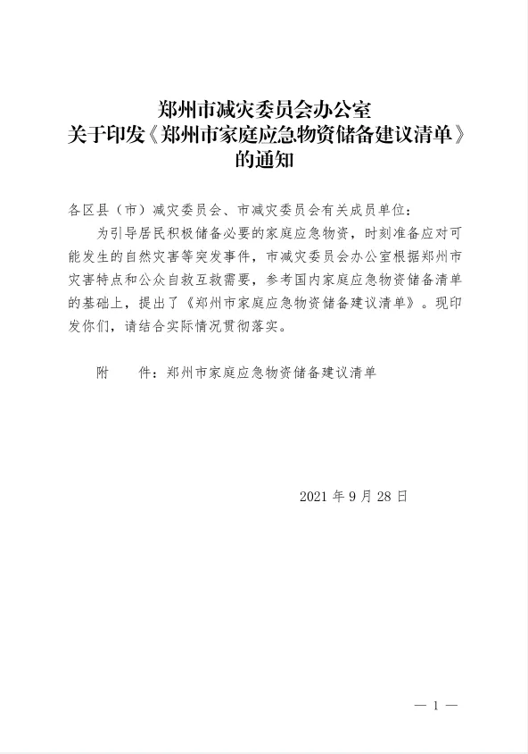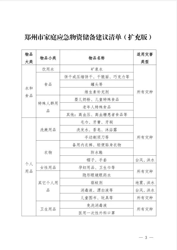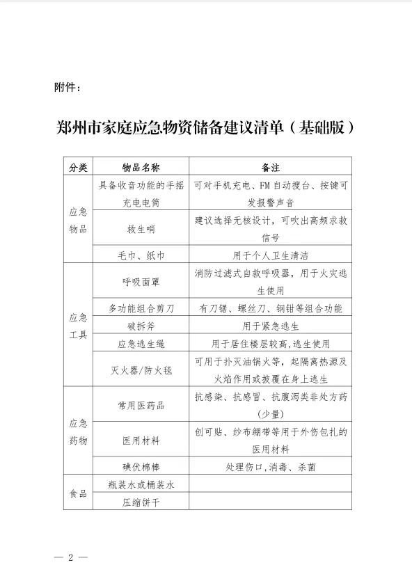 >《郑州市家庭应急物资储备建议清单(官方完整版)》