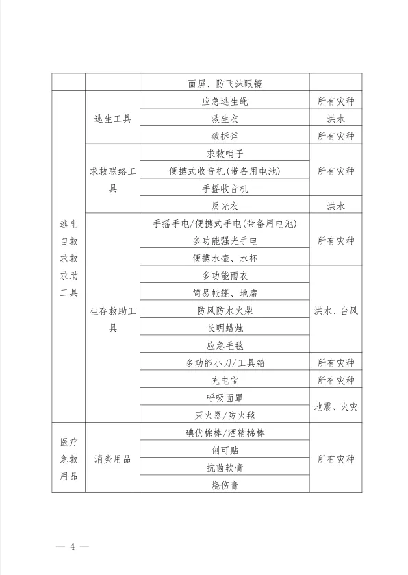 清单的目的是帮助居民在应对各种突发事件时能够更好地保护自己和家人的安全。