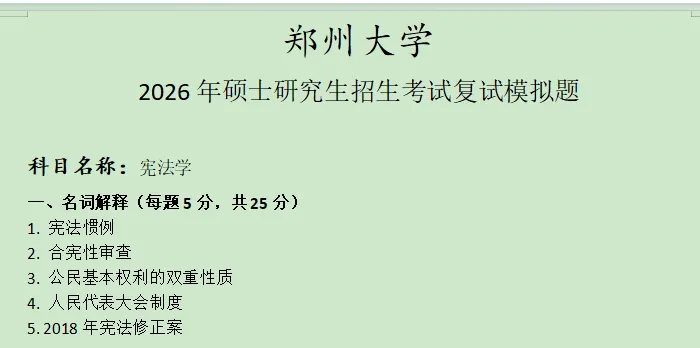 【免费获取】郑州大学宪法学考研复试模拟真题含答案