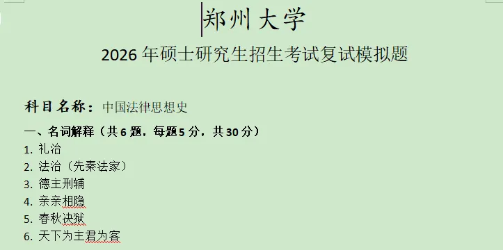 >【免费获取】郑州大学中国法律思想史考研复试模拟真题含答案