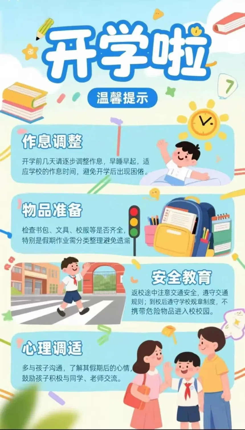 5.春季花粉、柳絮较多,请提前为过敏体质的孩子做好防护,叮嘱孩子在校期间身体不适及时告知老师。