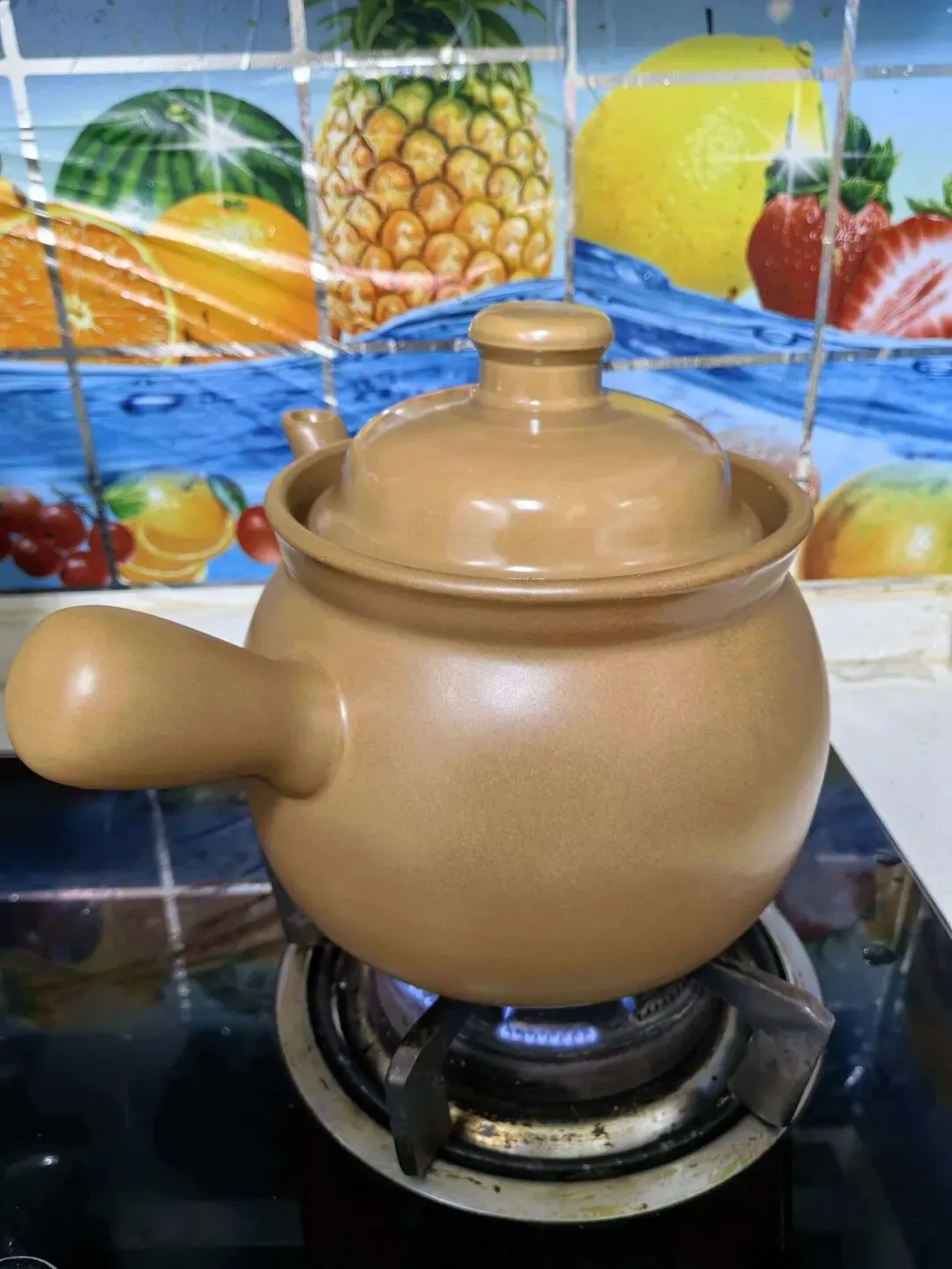砂锅买回来后,我按照医嘱,先把药材放进去,加凉水将全部药材淹没,浸泡2小时后放燃气灶上开大火熬煮。