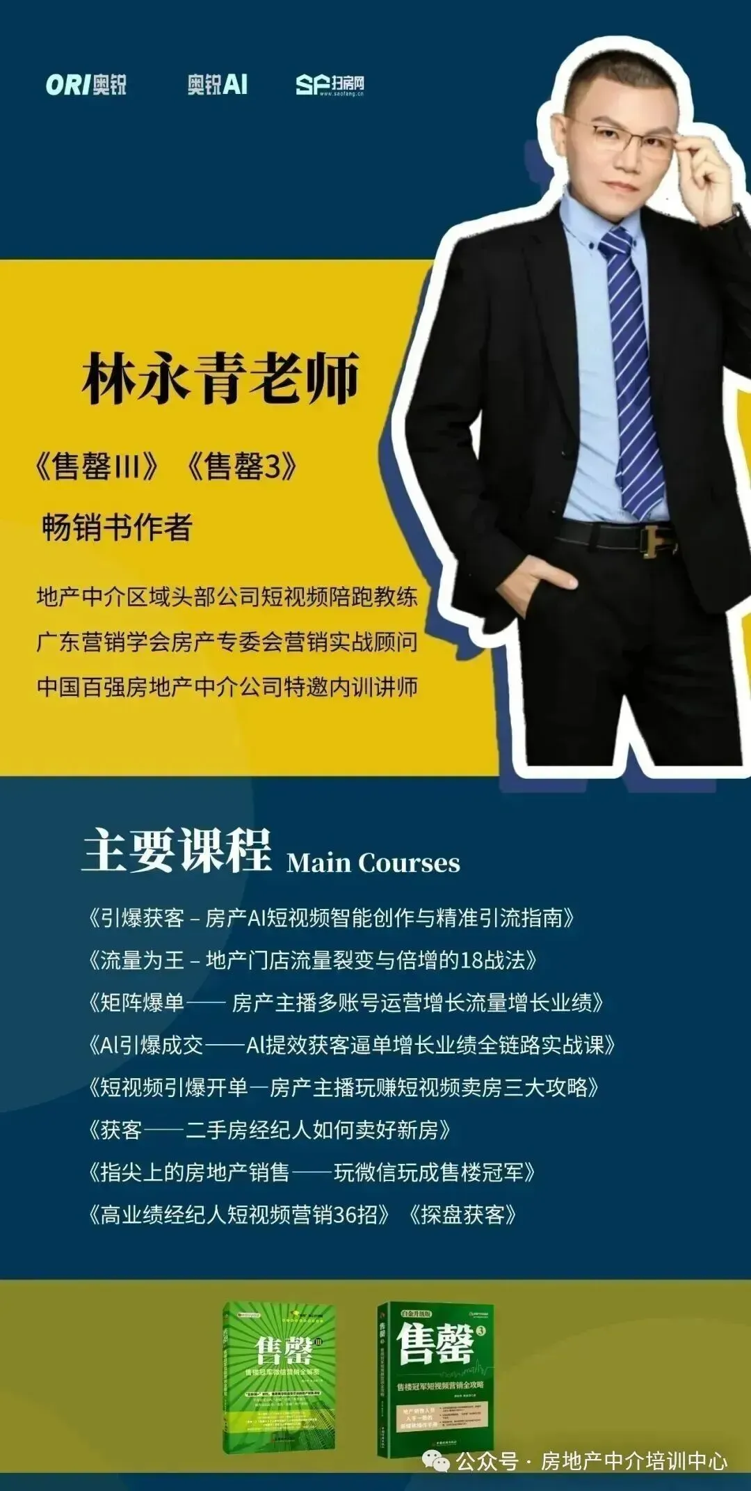 70%的房产销售还在苦等线索、艰难逼单,但已经有10%的先行者用“AI+短视频”实现了流量与业绩的倍数级增长!平台规则在变,客户习惯在变,你是选择在焦虑中等待,还是主动出击,用“超级AI销售”的力量引爆房产业绩?立即行动!报名《引爆获客 – 房产AI短视频智能创作与精准引流指南》实战课!抢占AI+短视频风口,做房产主播的领跑者!
