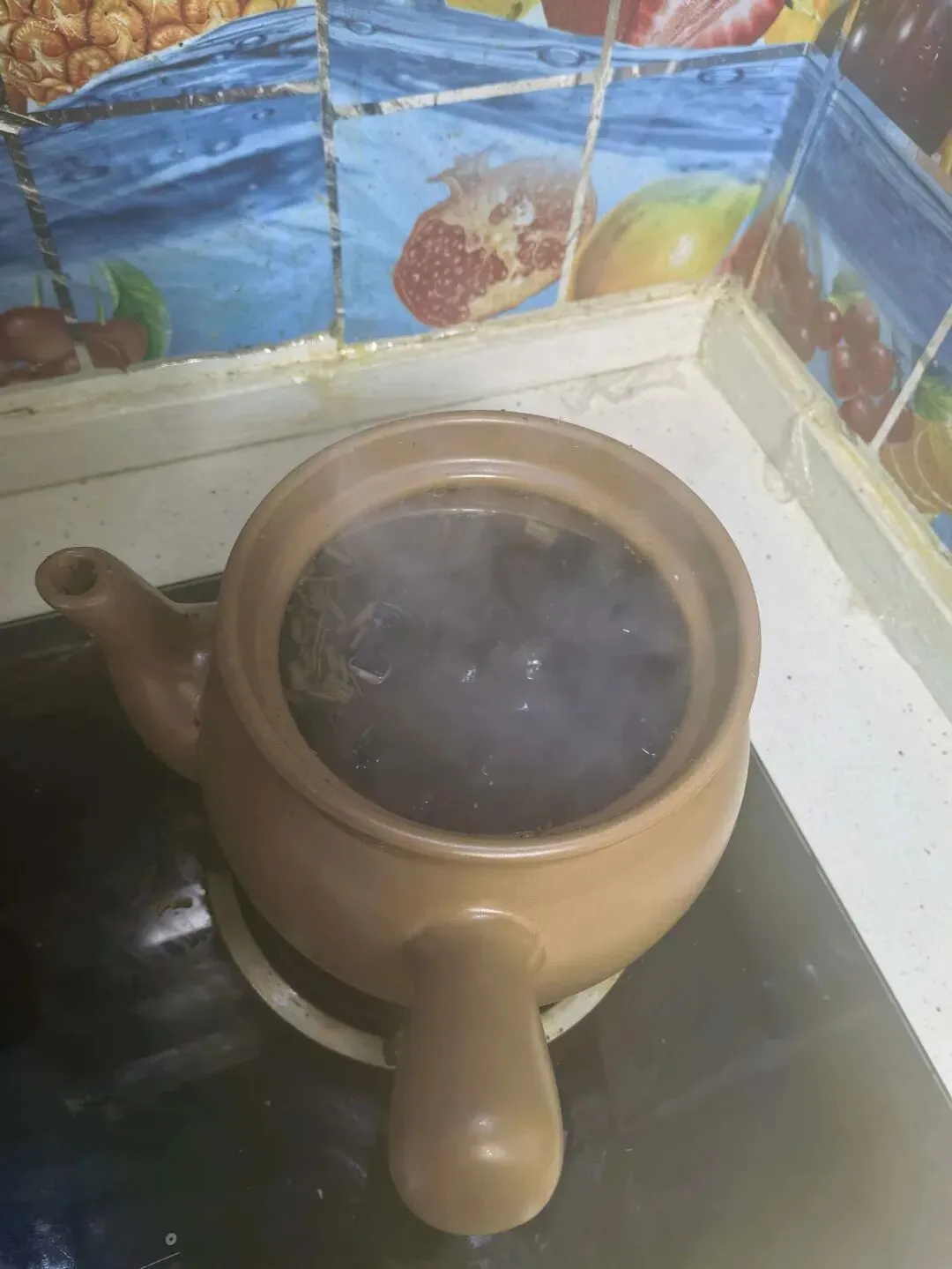 我转身去忙个别的事儿,稍不注意,锅里的水已经沸腾起来,从砂锅嘴里呼呼地冒着热气,汤汁带着一些药材从盖子的缝隙溢出来,烧锅和灶台周边全都是。