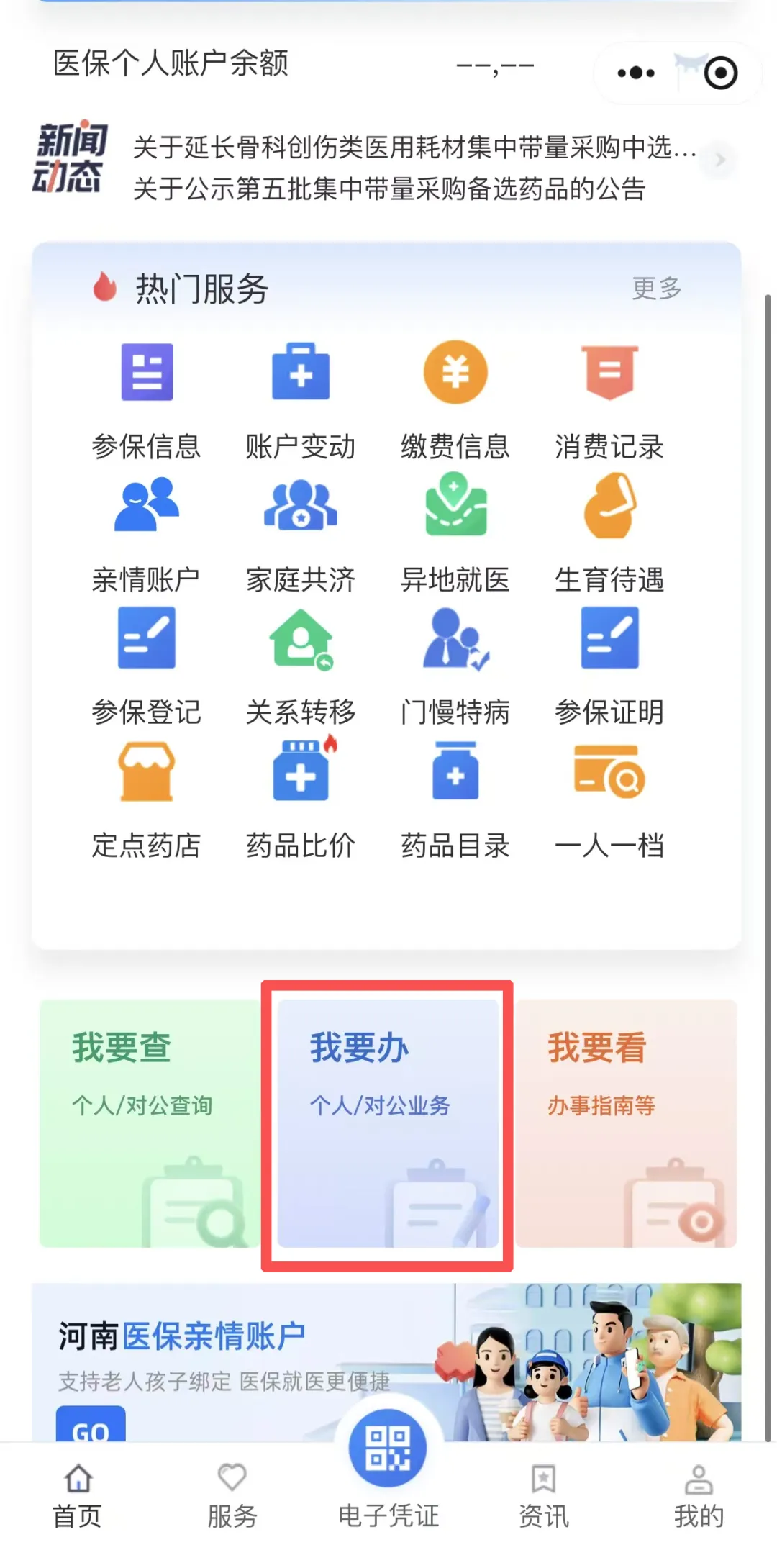 产后188天后,从上述入口进入或直接搜索【河南医保】小程序进入,点击【我要办】