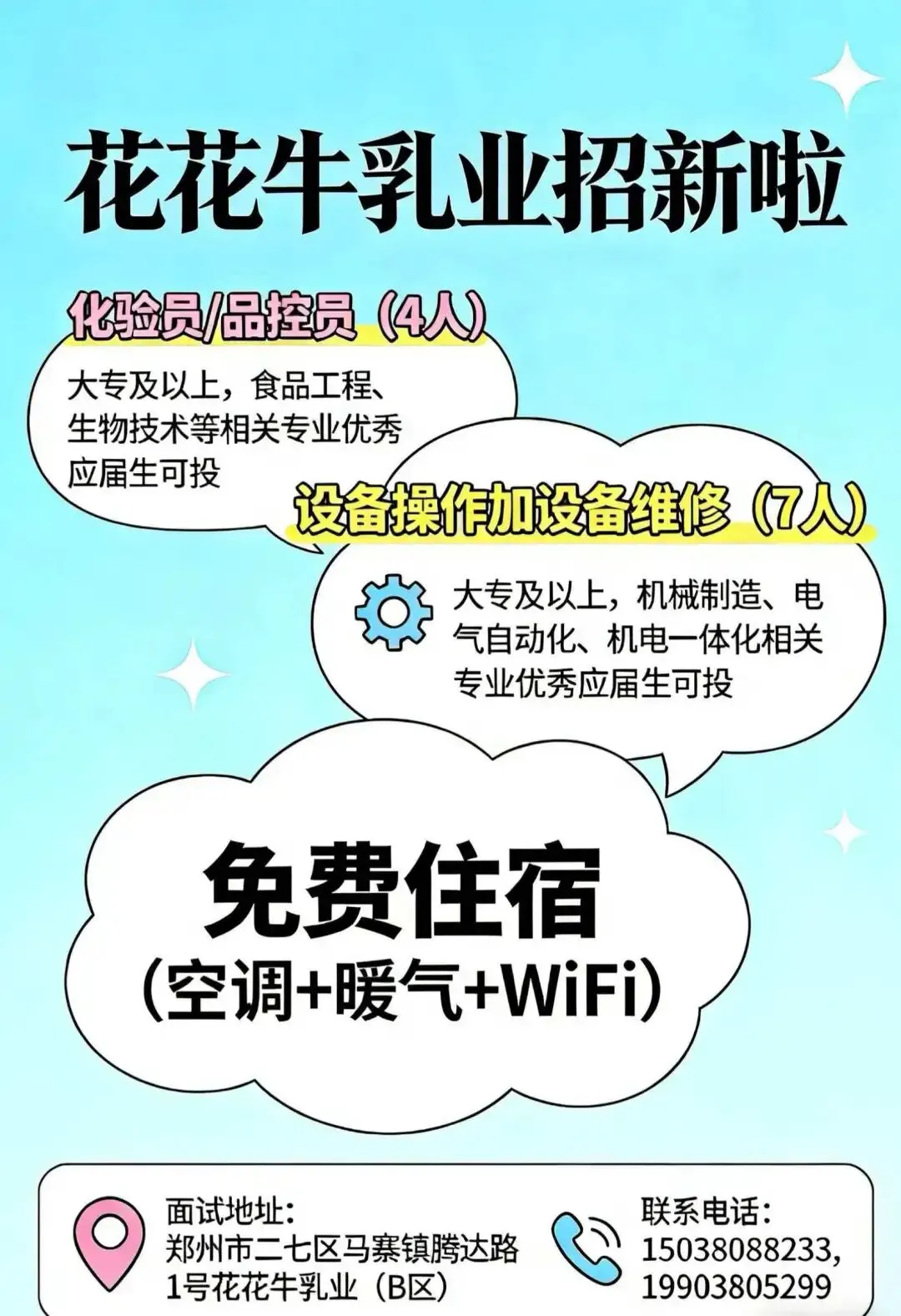 【招聘】河南花花牛乳业集团股份有限公司郑州分公司招聘信息