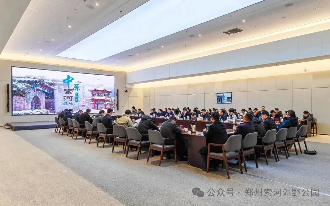 郑州市园林局召开2026年新春开年第三天,郑州市园林局组织召开推动复合型“公园+”建设工作战略部署会,全面激发公园绿地活力,切实提升复合功能与服务效能,聚力推动2026年“公园+”建设任务落地见效。会议组织各开发区、各区县(市)园林绿化主管部门、局机关相关处室、郑州市园林局所属各单位及各相关单位参会,开展现场经验交流分享。会上,郑州索河郊野公园作为“公园+”建设成效突出、特色鲜明的典型代表,其相关实践经验与创新做法获得重点分享,为全郑州市公园绿地提质增效、功能复合与服务升级提供了可复制、可推广的示范样本。索河郊野公园在会议上作为示范样本发言