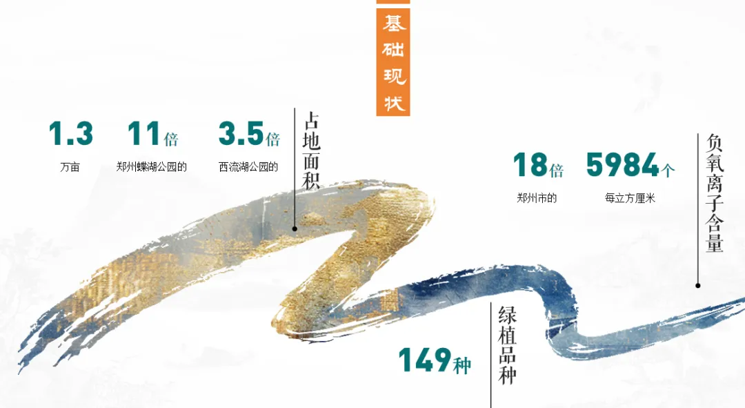 它面积1.3万亩,是郑州蝴蝶公园的11倍,是西流湖的3.5倍。