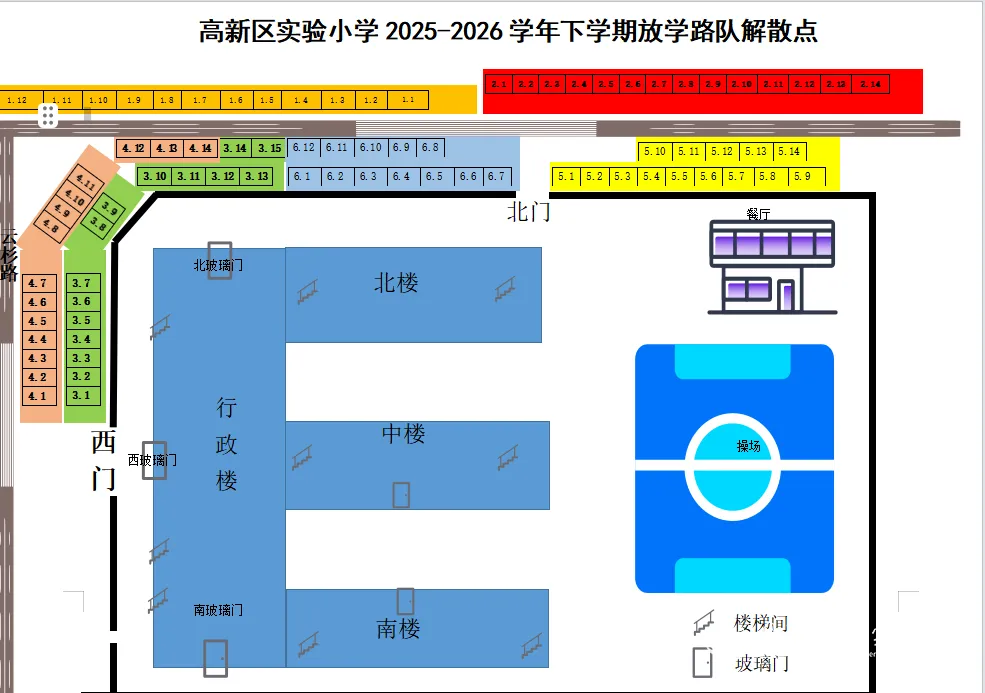 1.家长接、送孩子的区域一致,均在各年级指定位置。请勿在校门口扎堆接送,随接随走;
