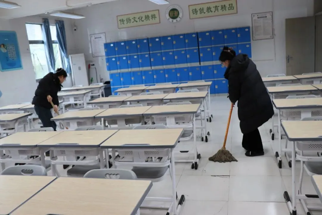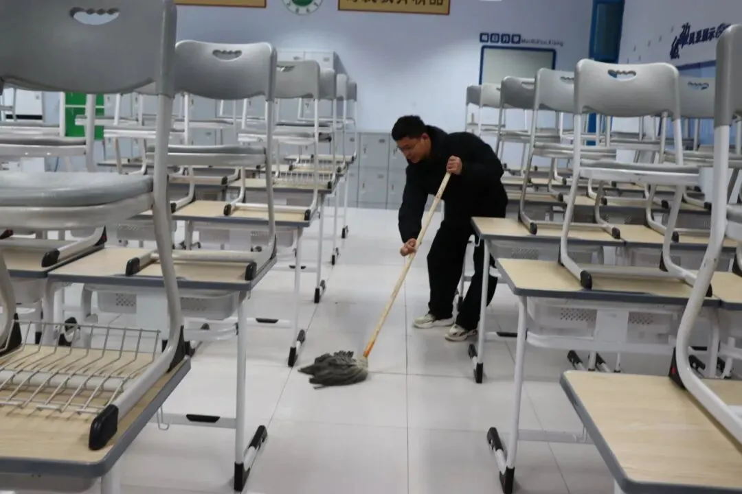 新春伊始,万象更新。为迎接2026年春季新学期,营造整洁、温馨、昂扬的校园氛围,郑州市维纲中学全面开展开学筹备工作,全体教职工以饱满热情投入环境整治、文化布置与教学保障,校园处处洋溢着新年新气象、奋进新征程的蓬勃朝气。清洁校园,焕新启航。全体教职工齐动手,对教室、走廊、公共区域进行彻底清扫,擦玻璃、清死角、摆桌椅,每一处角落都干净整洁、窗明几净,以清爽面貌迎接新学期。