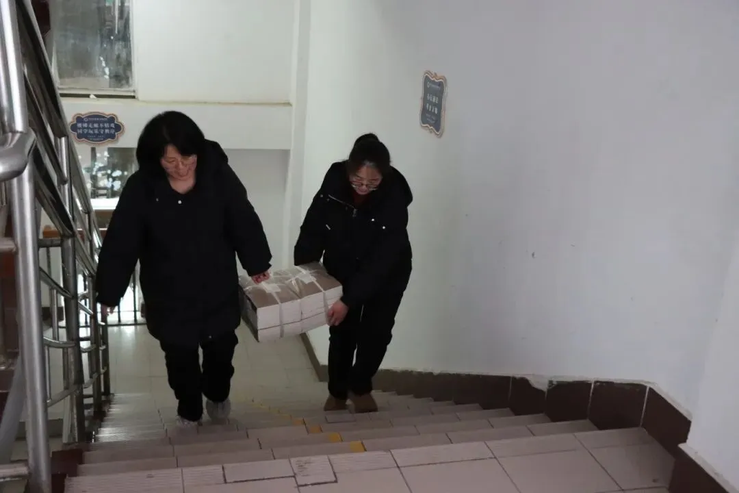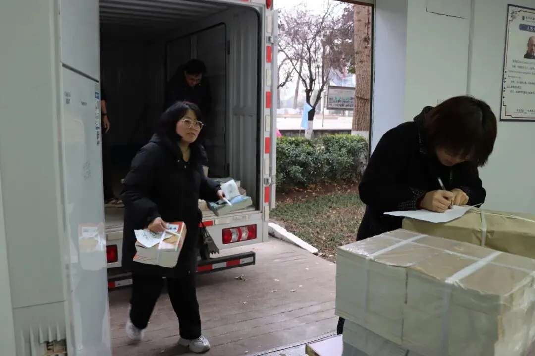 学校统筹安排教材分发工作,教职工们分工协作,清点、搬运、整理、摆放崭新课本,一摞摞书籍整齐到位,为新学期教学工作提供坚实保障,让书香满溢校园。