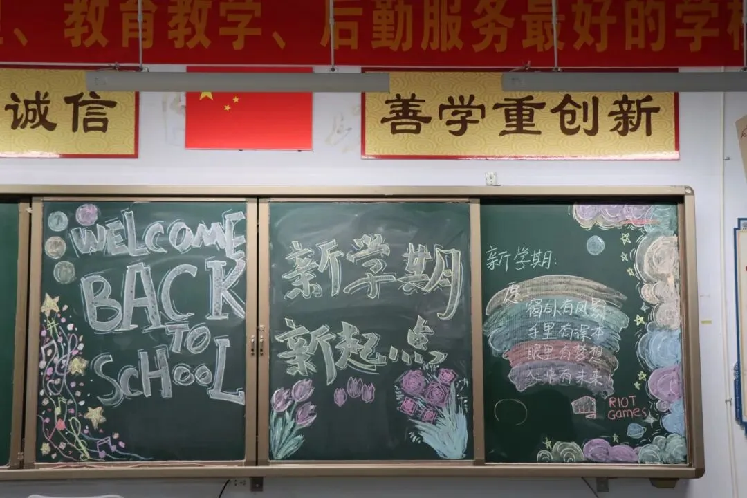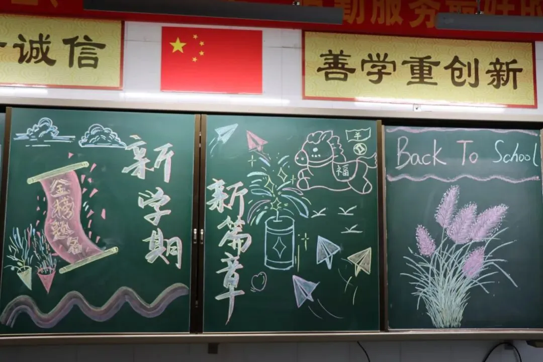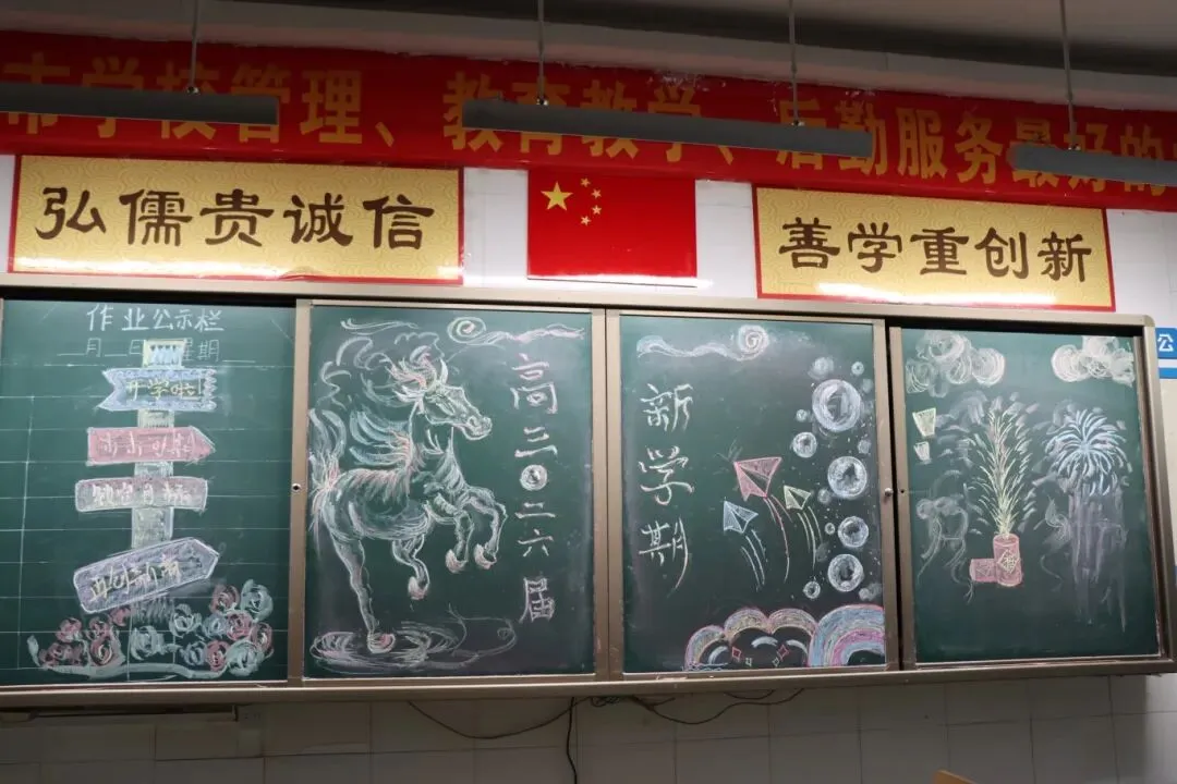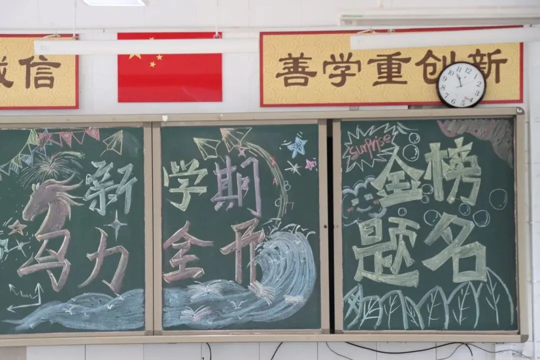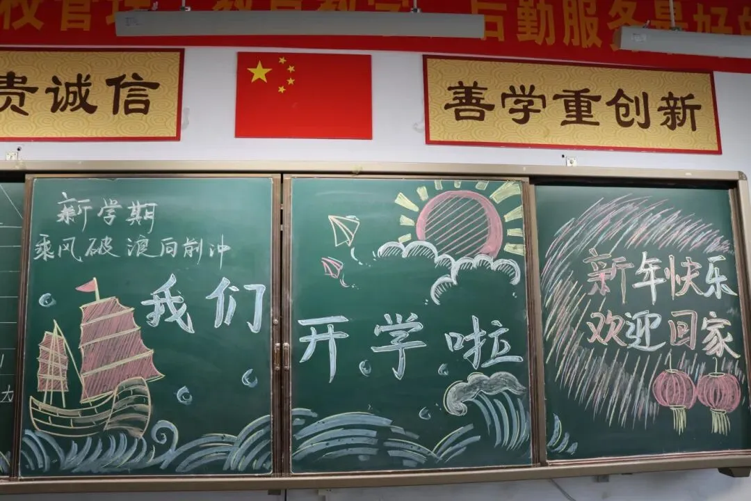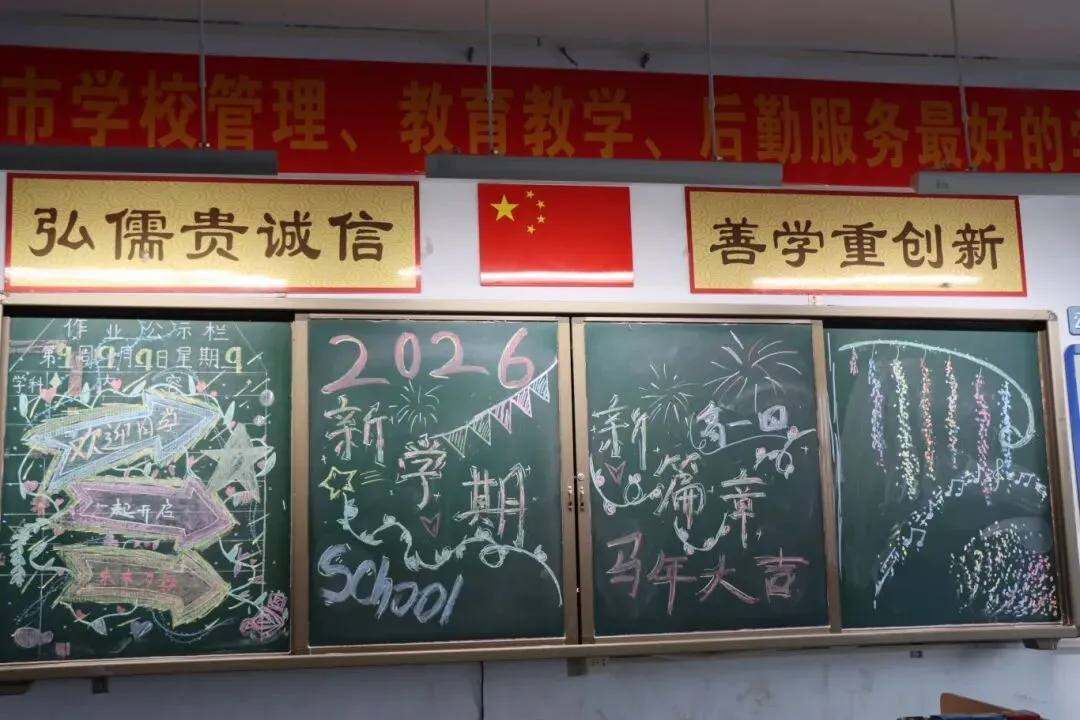 教职工们精心设计新学期黑板报与班级文化阵地,将马年祝福、励志格言、学习目标融入其中,色彩鲜明、内容丰富,用心扮靓温馨育人环境。