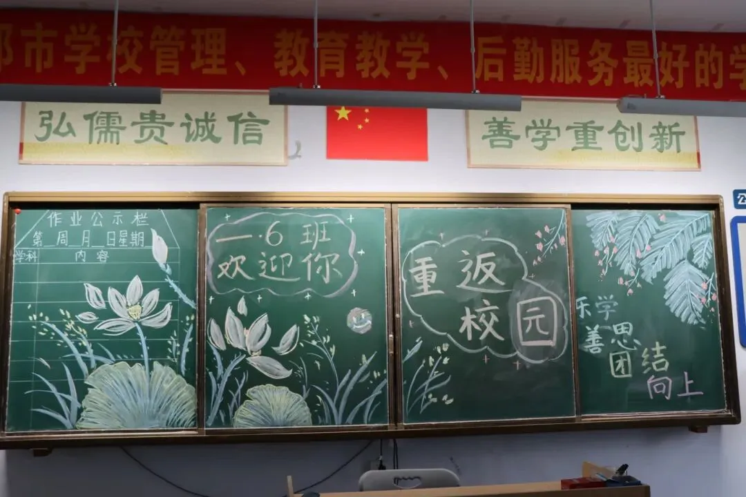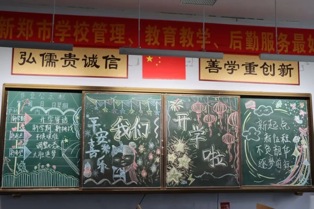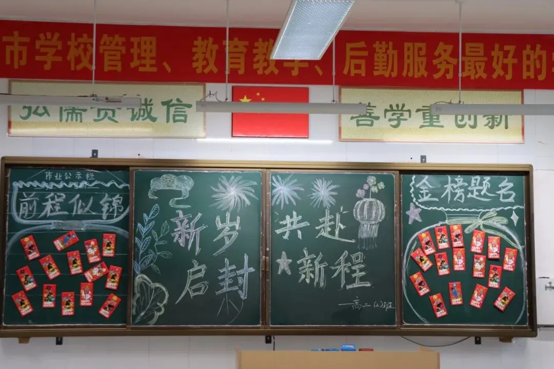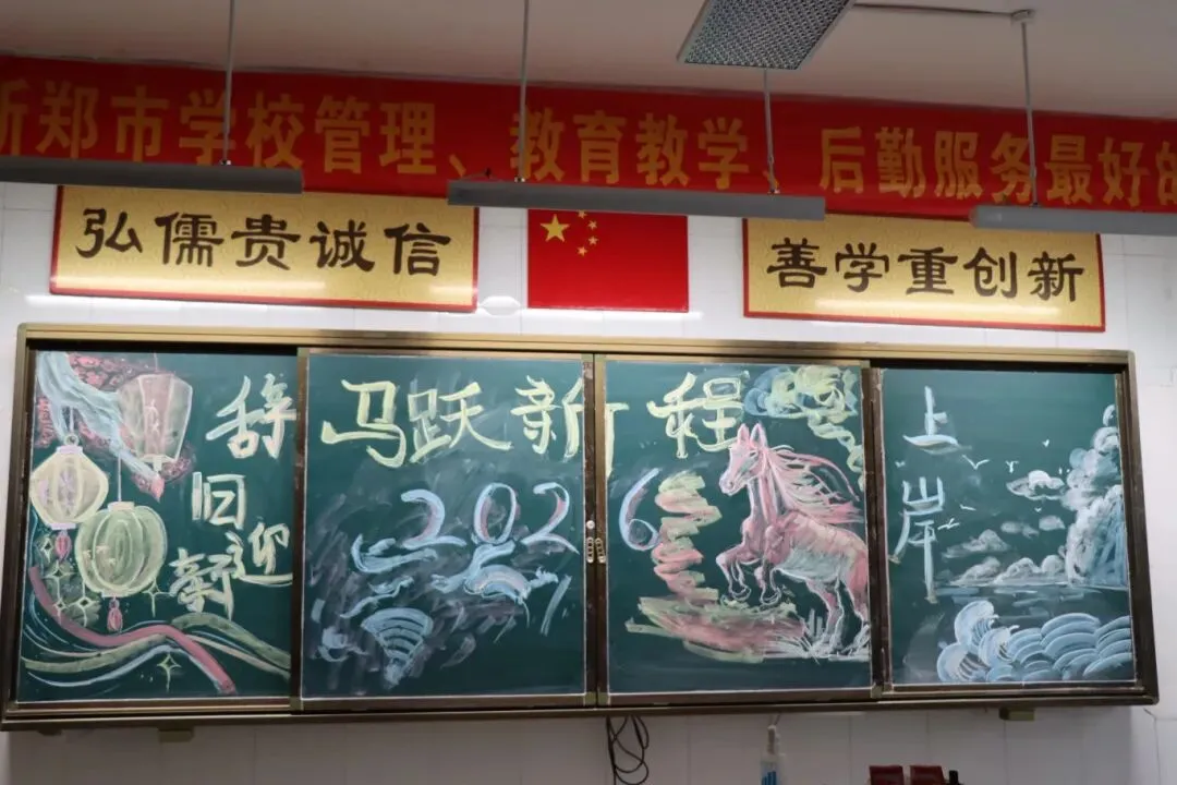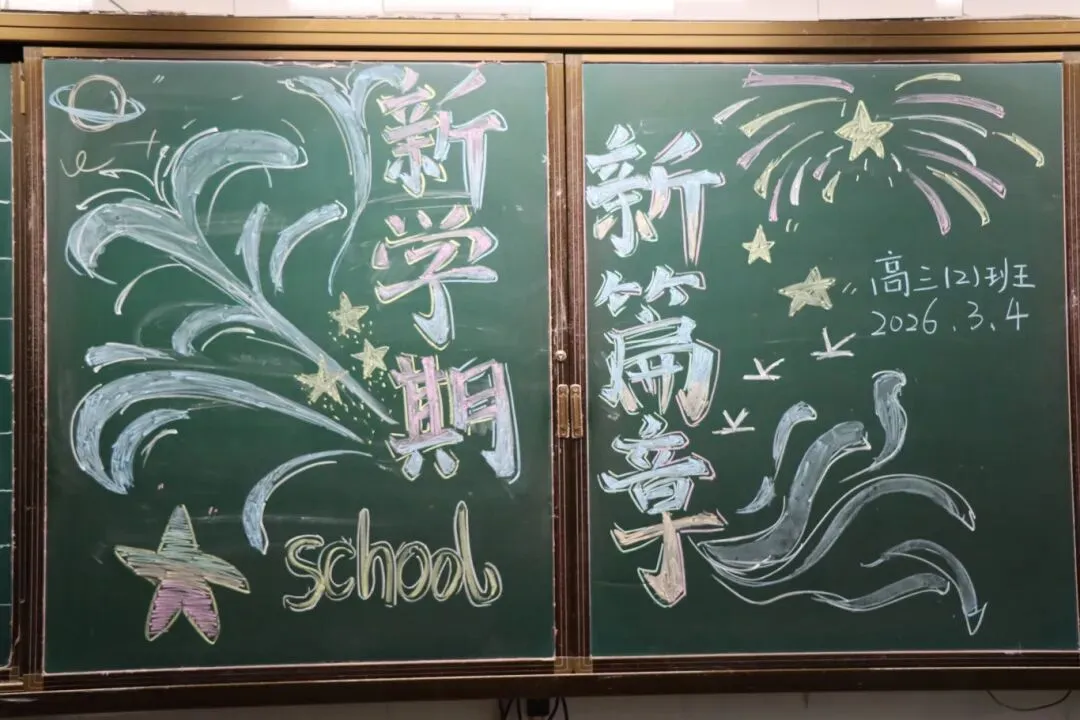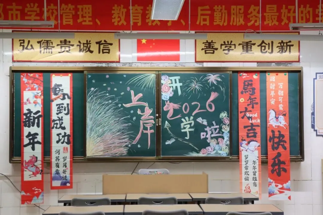 教职工们精心设计新学期黑板报与班级文化阵地,将马年祝福、励志格言、学习目标融入其中,色彩鲜明、内容丰富,用心扮靓温馨育人环境。
