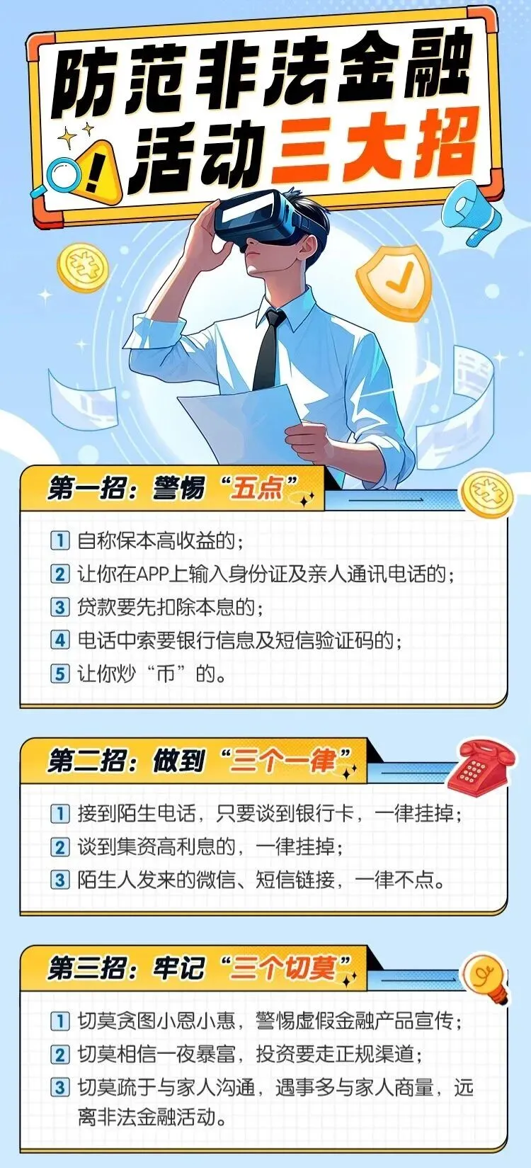 近年来,非法集资、非法网贷、高利贷等非法金融活动日益泛滥,严重扰乱了金融市场秩序,损害了人民群众利益,具有极大的社会危害性。为防范非法金融活动,守护您的财产安全,郑州市第四十七高级中学特别发出以下提醒: