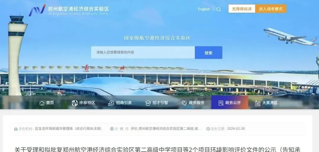 记者从郑州航空港官网了解到,根据建设项目环境影响评价审批程序的有关规定,郑州航空港经济综合实验区生态环境和城市管理局(综合行政执法局)现将郑州航空港经济综合实验区第二高级中学项目、郑州航空港经济综合实验区第三高级中学项目环境影响评价文件的基本情况进行受理和拟批复公示。