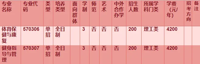 4.体育保健与康复专业、健身指导与管理专业,一共计划录取400人,这两个专业之间可兼报,按成绩从高到低依次择优录取。