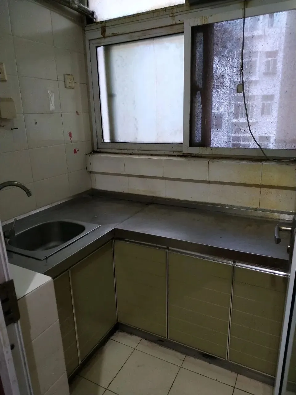 青年居易最先看的。小区不大,一个院子好多栋楼,旧但不破。中介带我们看了一套四十三平的一室一厅,进屋就是个小客厅,往里走是卧室,厨房卫生间都不大,但该有的都有。
