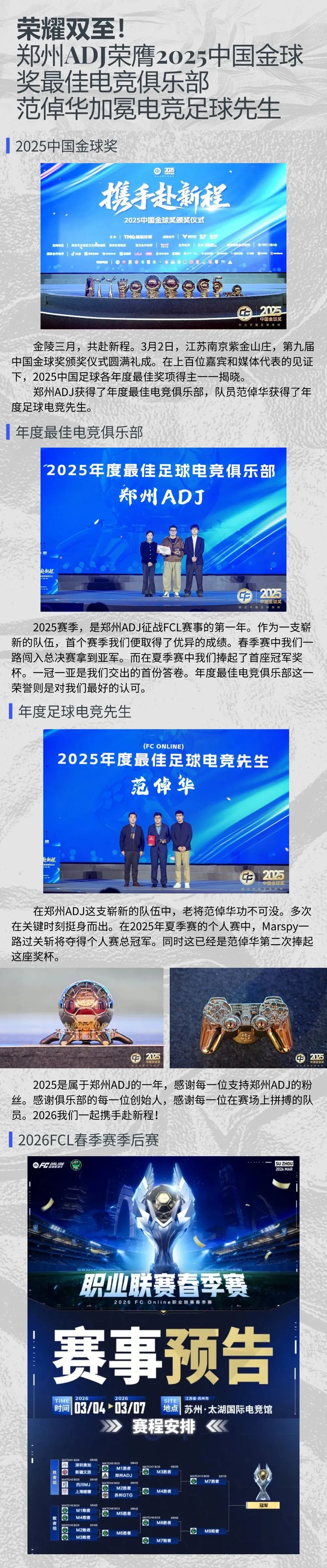 >荣耀双至!郑州ADJ荣膺2025中国金球奖最佳电竞俱乐部|范倬华加冕电竞足球先生