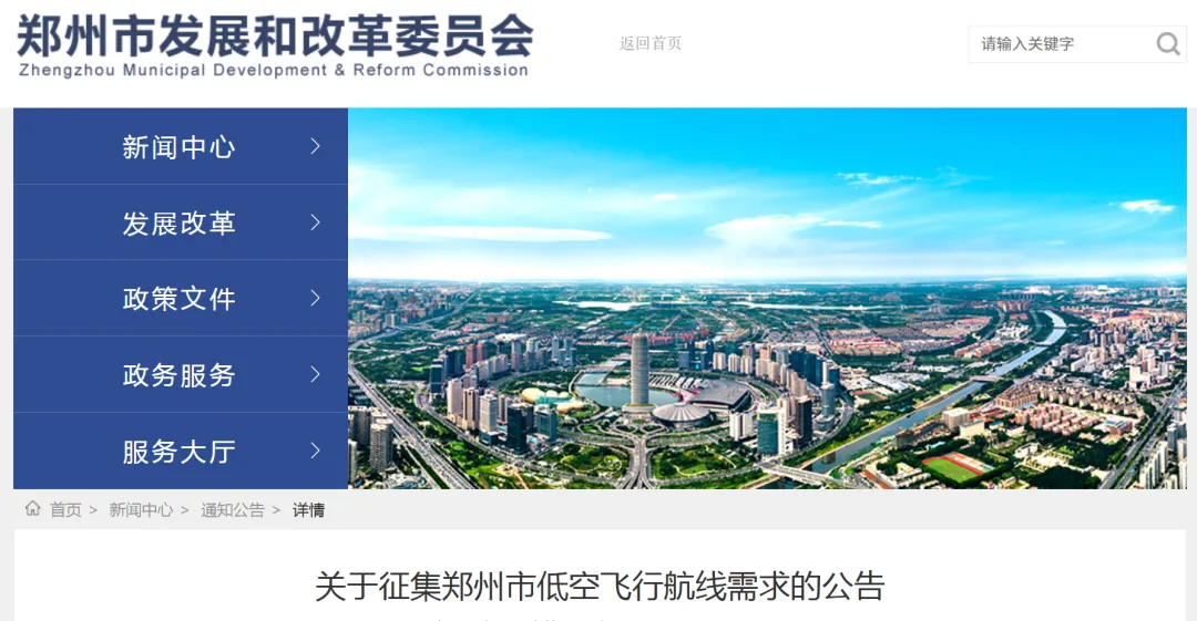从郑州市发展和改革委员会官网获悉,为做好低空公共航路划设工作,推进郑州市低空经济高质量发展,现公开征集郑州市低空飞行航线需求,有关事项公告如下: