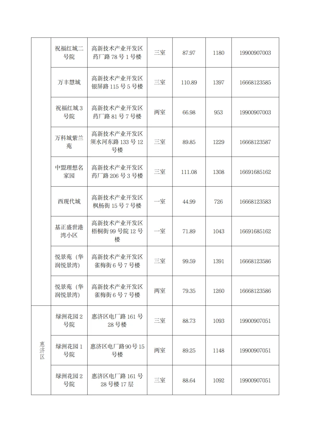 保障性租赁住房房源明细如下