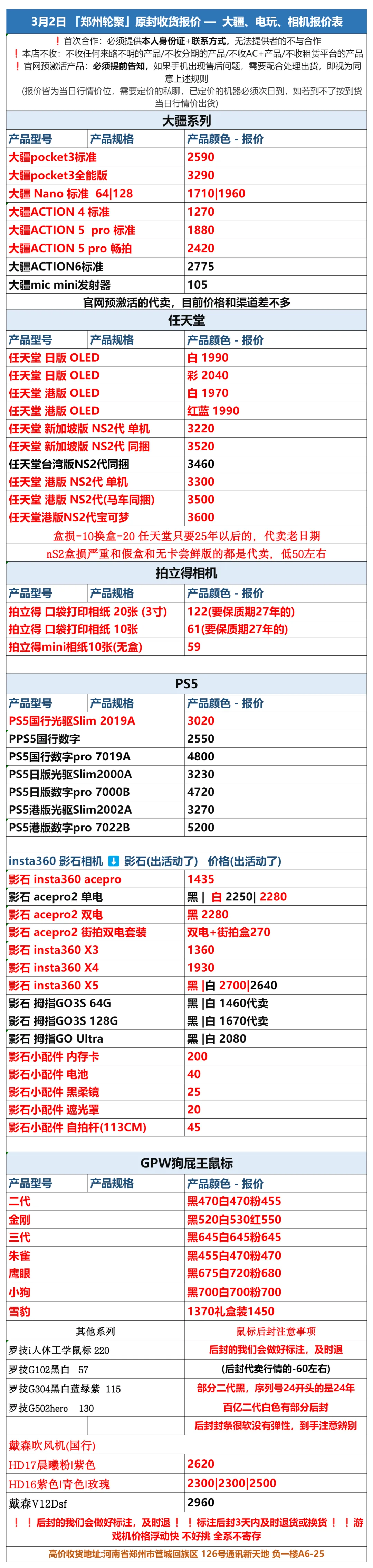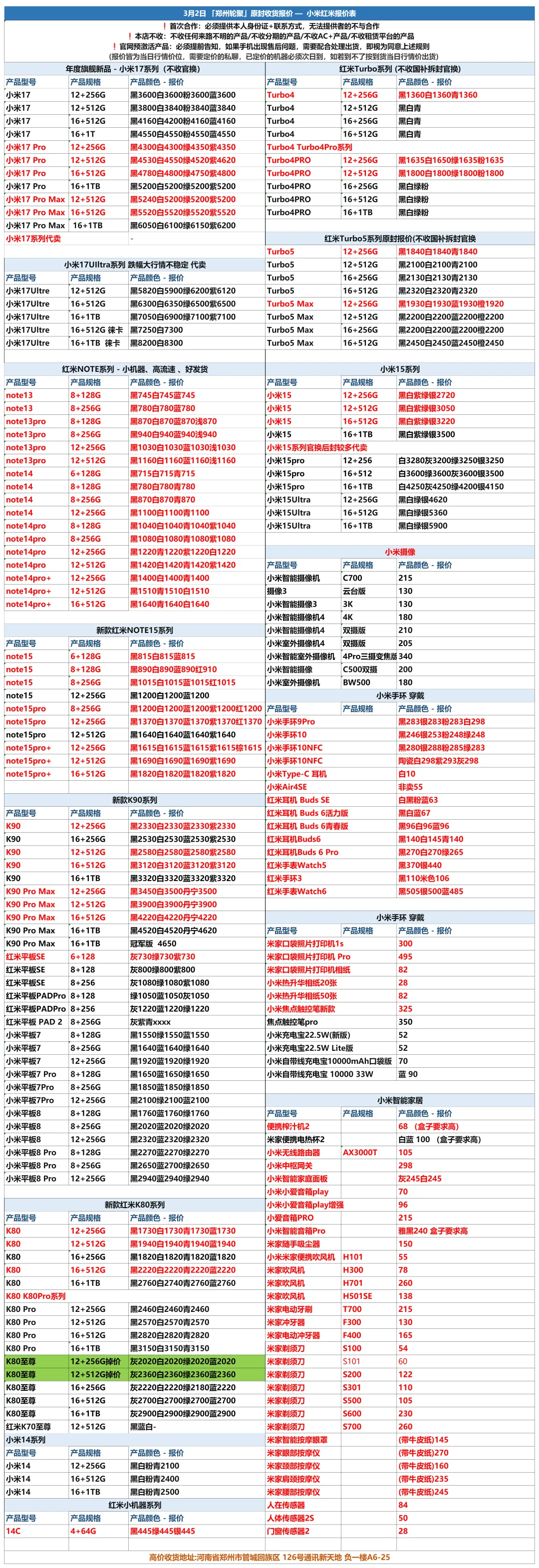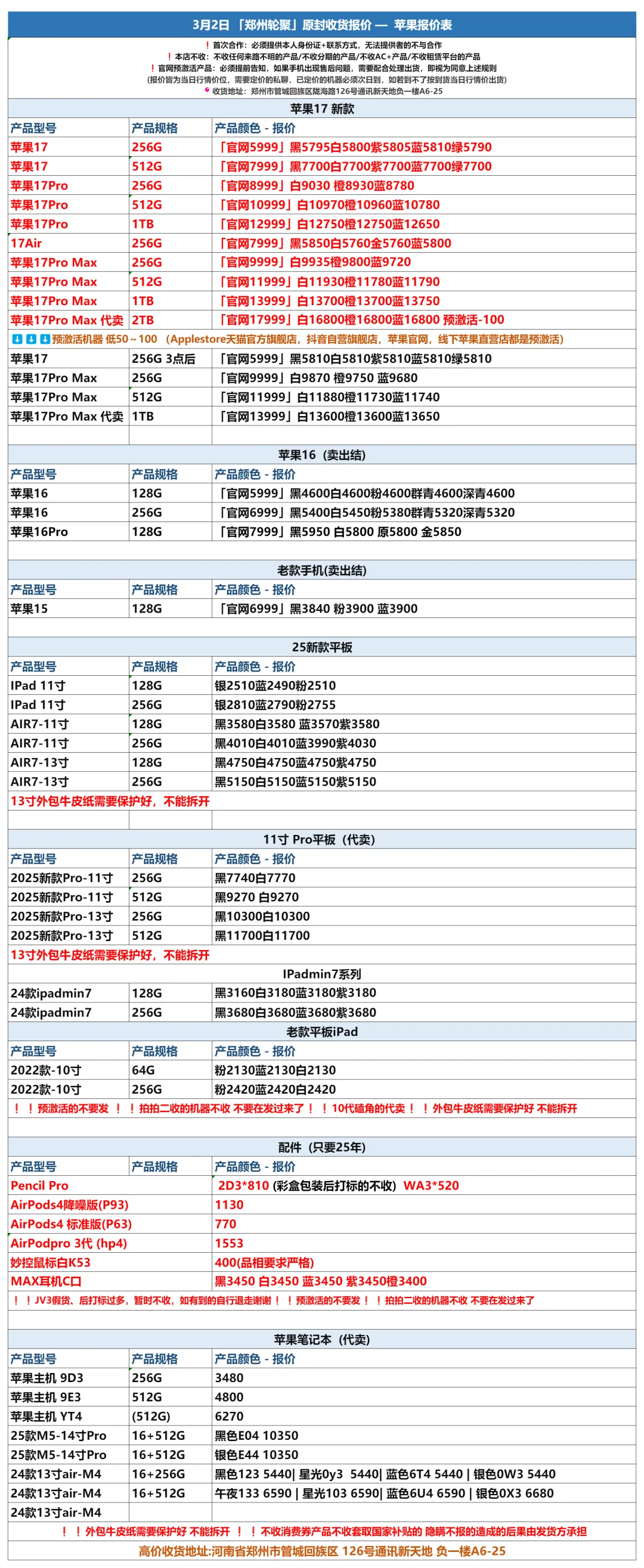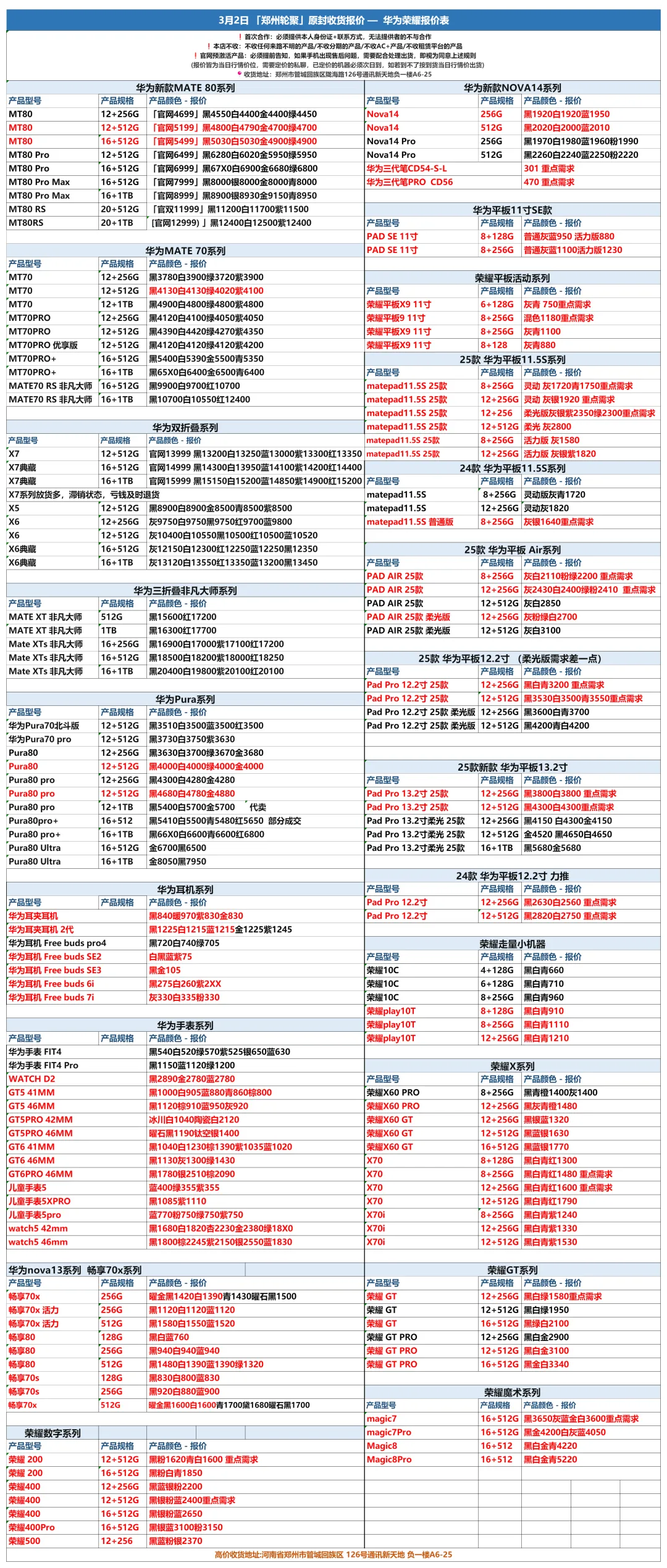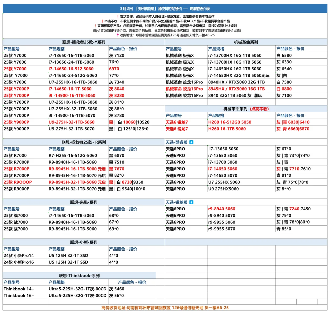 郑州轮聚通讯 2026年3.2日数码报价更新