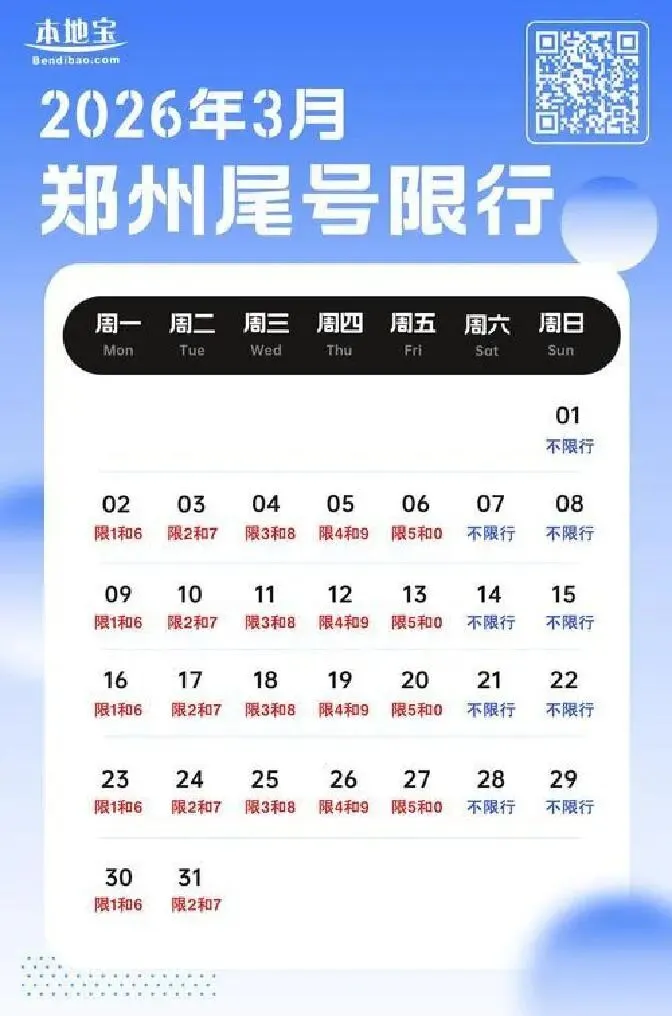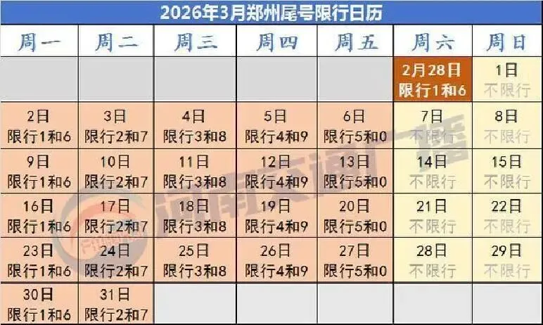 郑州限行规则,今年最新:每周工作日7点到21点,三环内(含临时牌、外地车),尾号1和6今天绝对不能上路。处罚?记1分,罚款100块。别以为周末就安全——调休上班的周六周日,照样按对应工作日限行。上周五就是调休,所以今天限行。我表弟前天开车送女朋友上班,以为周六能放风,结果刚出小区就被交警拦下,直接“秒罚”。他当时在电话里吼:“这规则比星座还玄乎啊!”