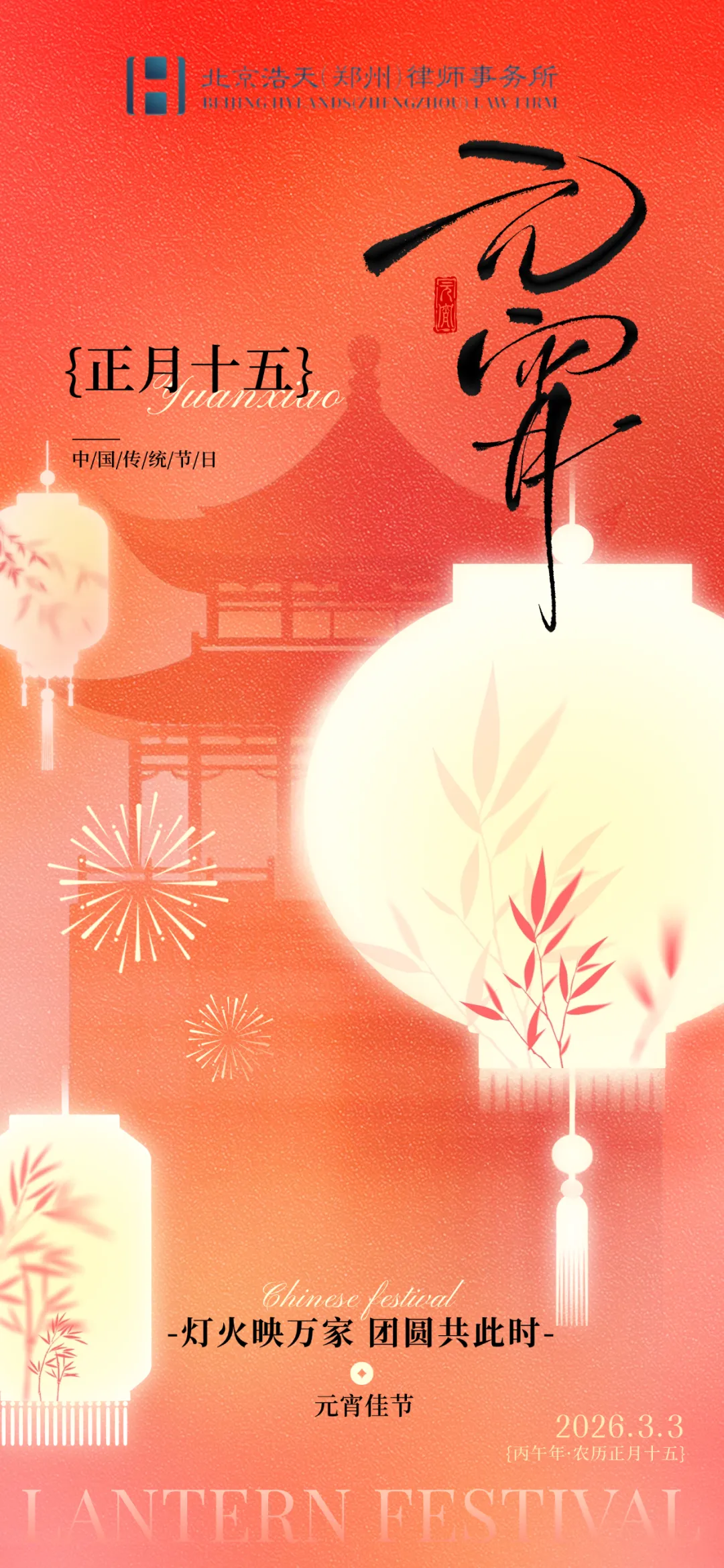 浩天郑州愿你花灯映眉眼,暖意满心间;愿元宵甜糯,阖家围坐,共赏人间好时节;愿星河璀璨,灯火可亲,新年万事皆圆满。愿你以团圆为序,以美好为章,奔赴新岁皆坦途,岁岁年年常安澜。元宵快乐!