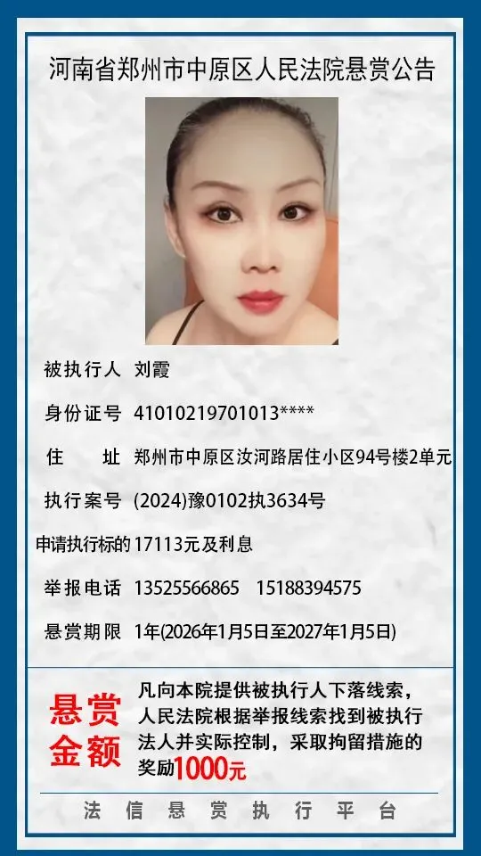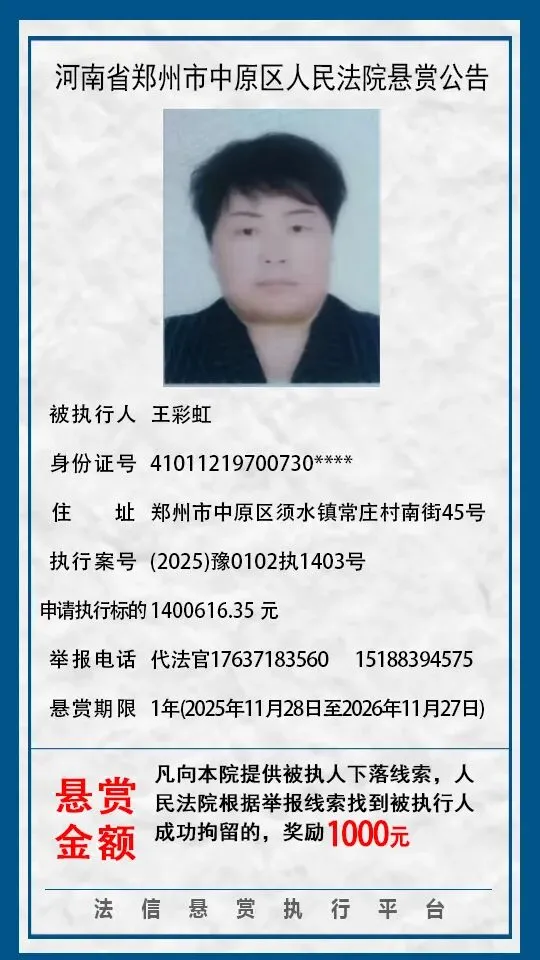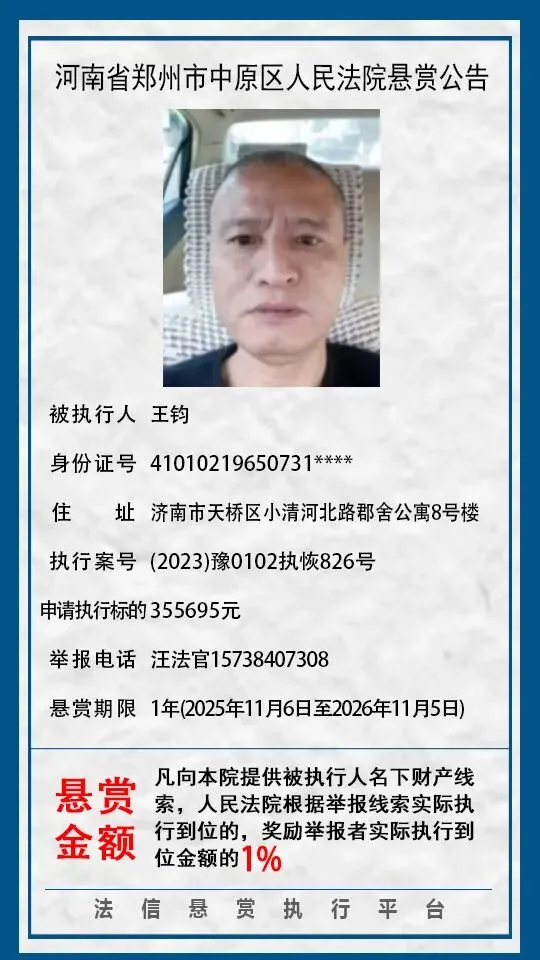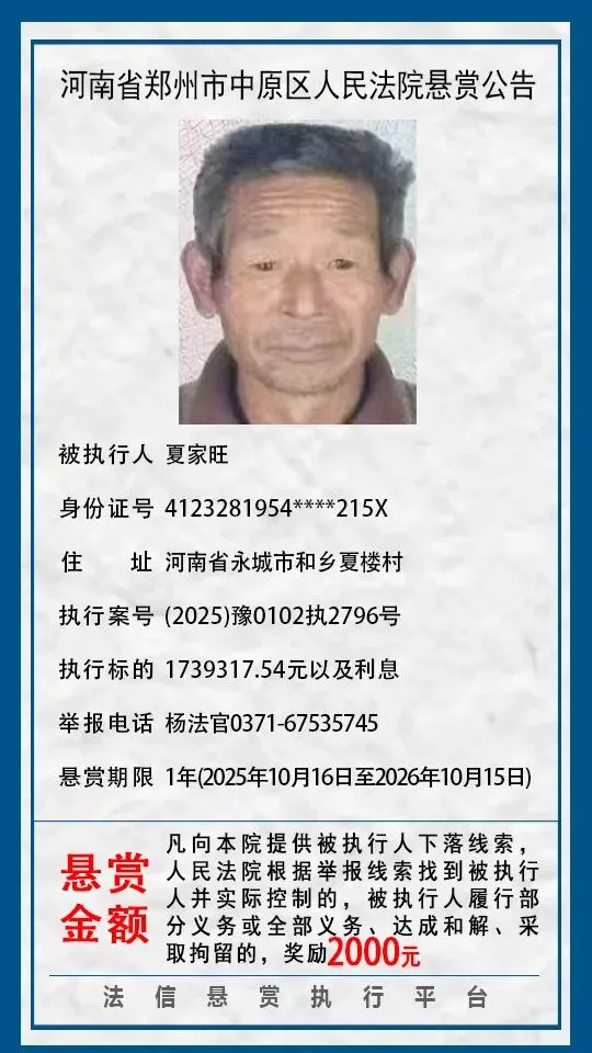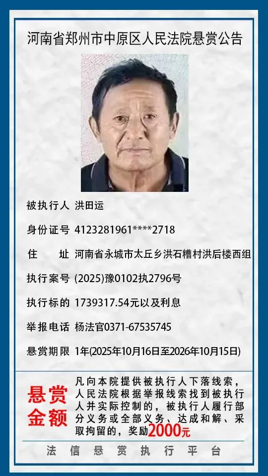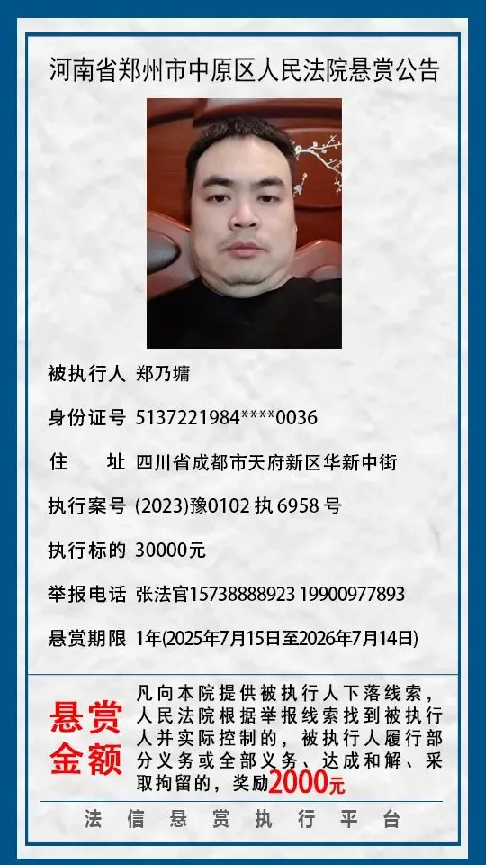 当前位置:首页>郑州>河南省郑州市中原区人民法院悬赏公告(2025年2月-2026年1月汇总)