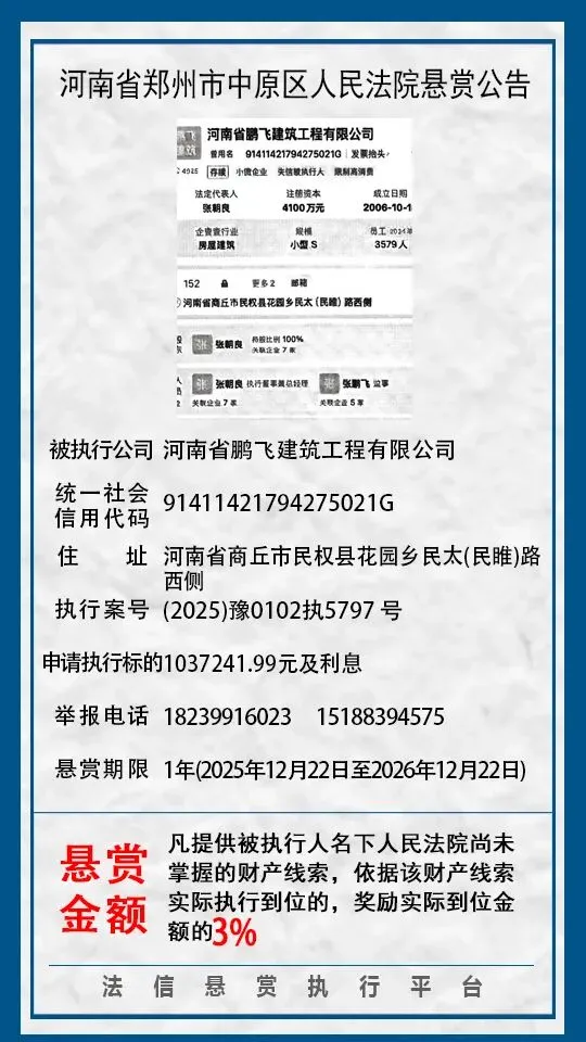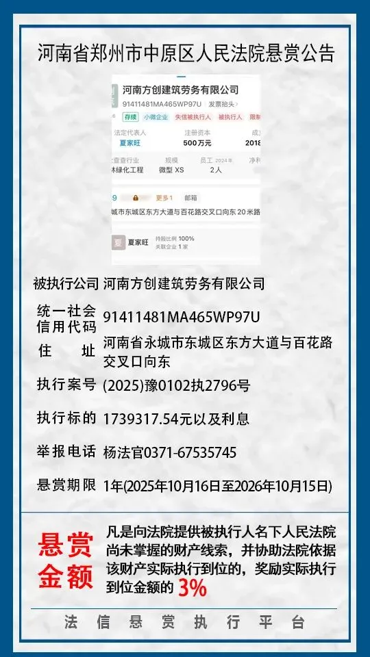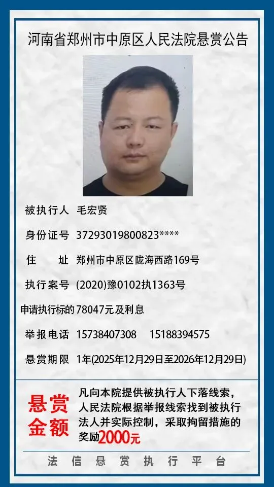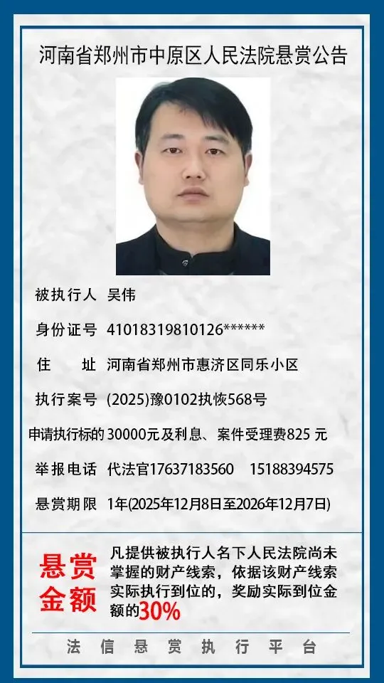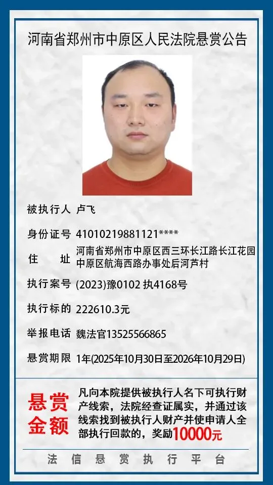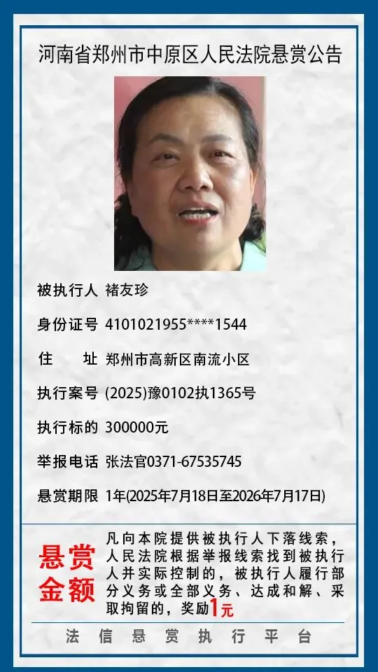 当前位置:首页>郑州>河南省郑州市中原区人民法院悬赏公告(2025年2月-2026年1月汇总)
