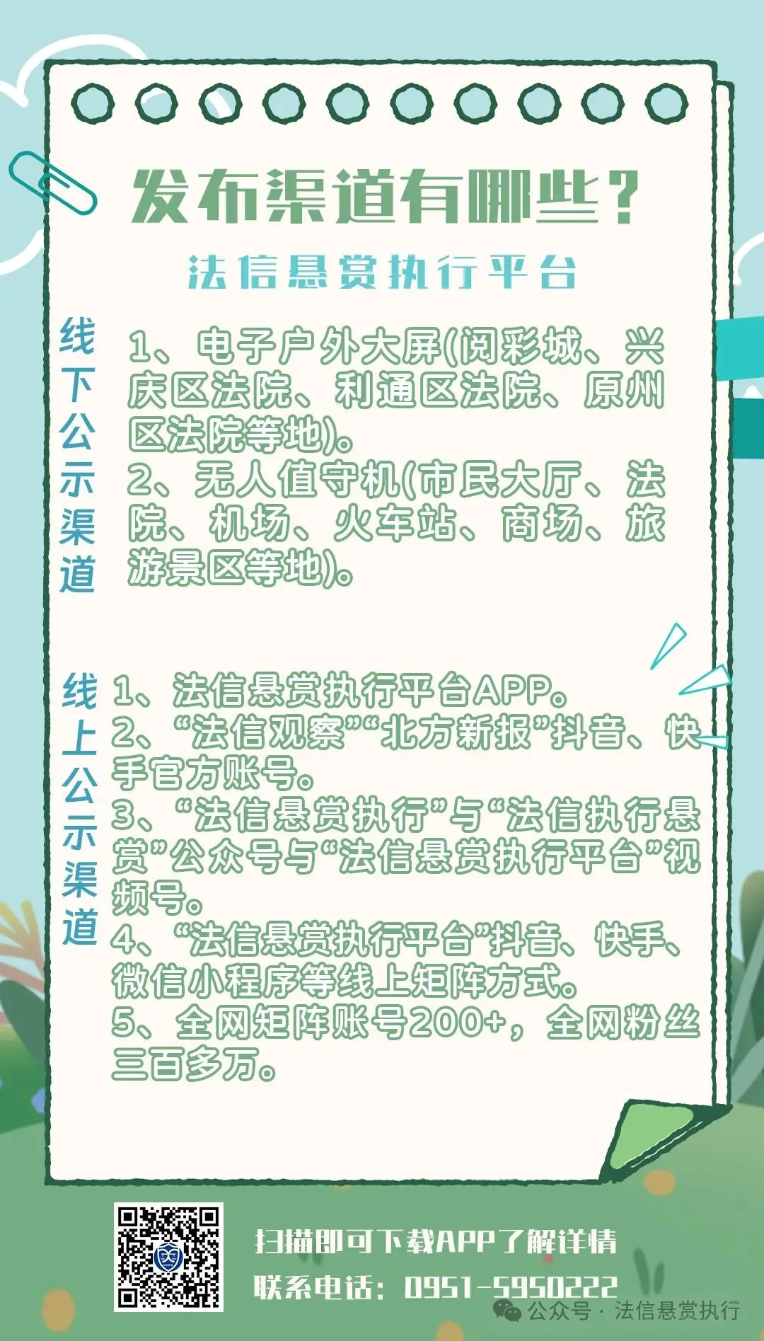 1、本“法信悬赏执行平台”微信公众号所登悬赏公告类文章均为实时信息,不具有长久效力,一旦被执行人履行了相关义务、公告自动到期或法院发布悬赏结果通知书之日起失效。因微信公众号平台功能技术问题对已发布的文章无法进行删改图片且文字修改仅支持20个字符以内,我平台无法删除已发布过的文章中的图片,对此我平台予以公示下架公告为准(严禁使用不正当手段获得举报线索)。