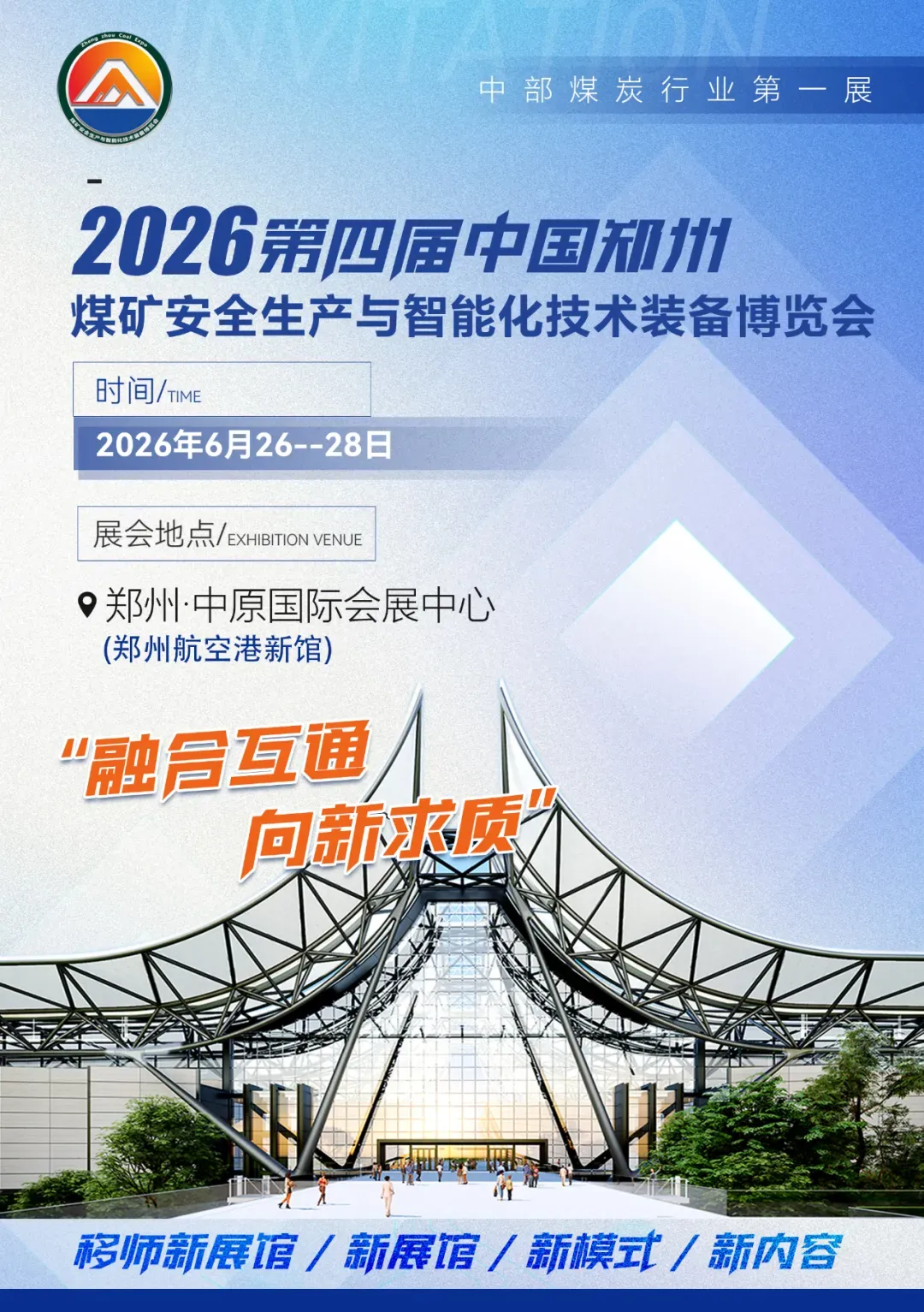 中国(郑州)煤矿安全生产与智能化技术装备博览会已成功举办三届,同期举办了多场煤矿智能开采学术交流论坛,通过专业化、市场化、国际化、品牌化的运作模式,为能源企业提供一个展示交流、贸易洽谈、市场推广的高效服务平台。深度呼应国家“加快煤矿智能化改造”“提升矿山安全生产水平”的政策要求,聚焦新质生产力培育,打造“十大核心展区+五大重磅活动”的展会矩阵,全面展现煤炭行业智能化、绿色化发展成果。为深入贯彻落实《中共中央办公厅国务院办公厅关于进一步加强矿山安全生产工作的意见》等文件精神和全省新型工业化暨重点产业链培育推进大会精神,全面加快煤矿数字化转型,提升煤矿智能化水平,助推煤炭工业安全、高效、绿色发展,以“融合互通 向新求质”为主题的2026“第四届中国(郑州)煤矿安全生产与智能化技术装备博览会”将于6月26日在郑州中原国际会展中心隆重召开!
