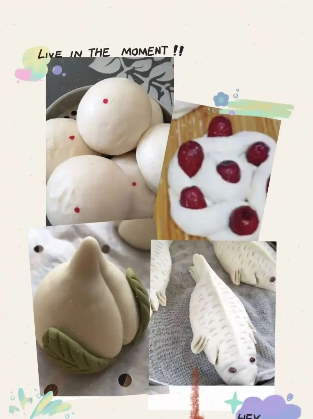 《馒有盼头》:在发面过程中观察酵母菌的“呼吸”,用镜头记录面团从“小不点”到“白胖子”的神奇蜕变;馒头上加上大枣,寓意“五谷丰登”。鱼形的馒头寓意吉祥、年年有余。桃形的馒头寓意着长寿。馒头上点上红点,寓意着红红火火......