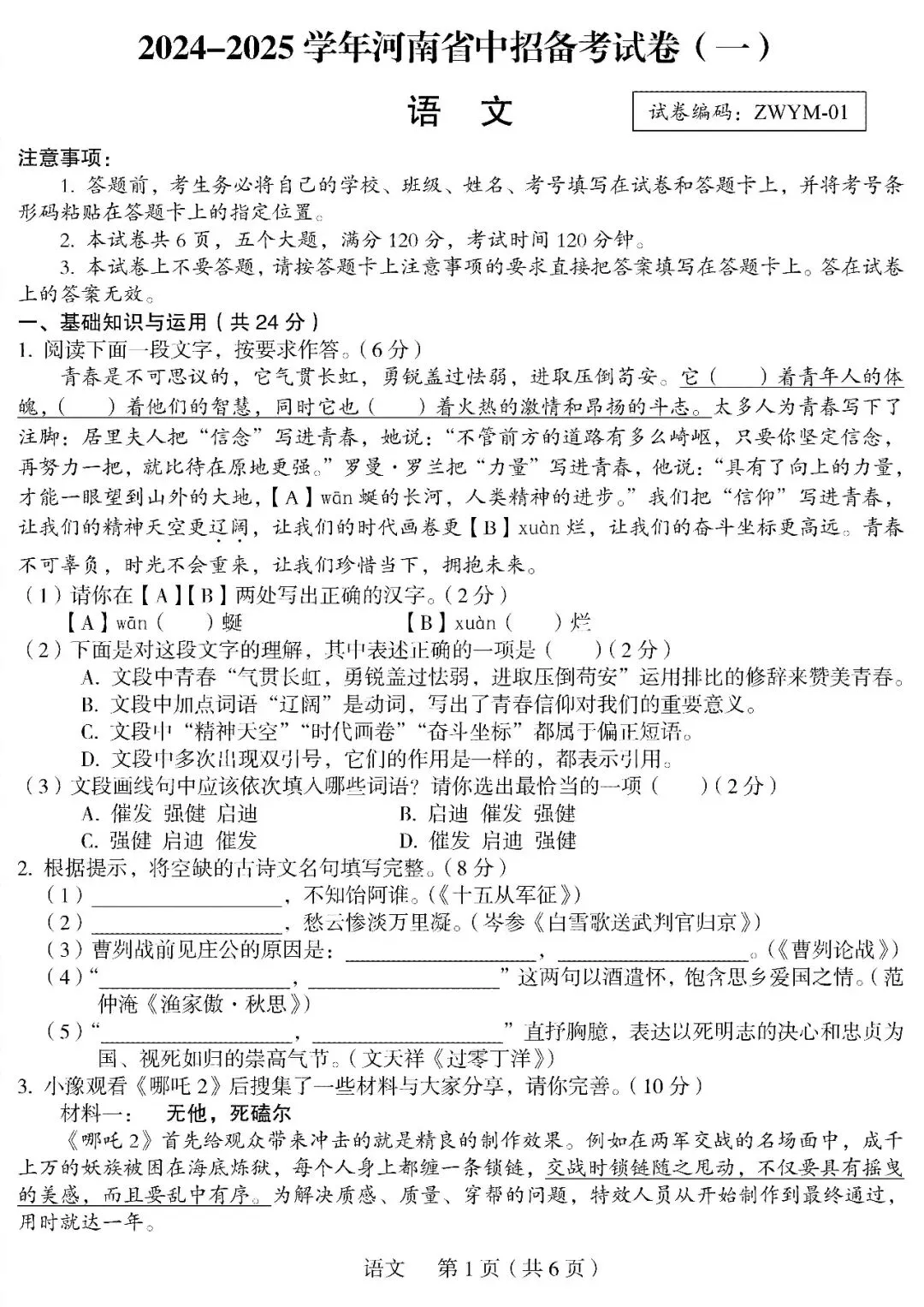 郑州外国语中学2025年九年级一模真题