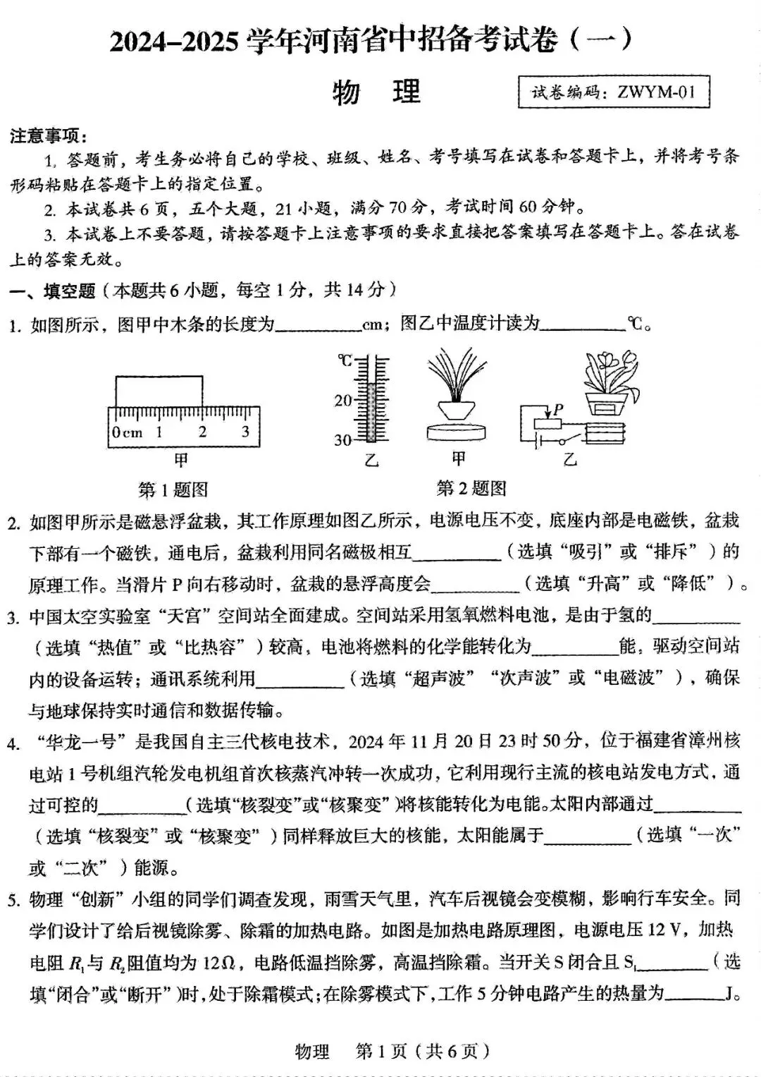 外总物理一模+答案