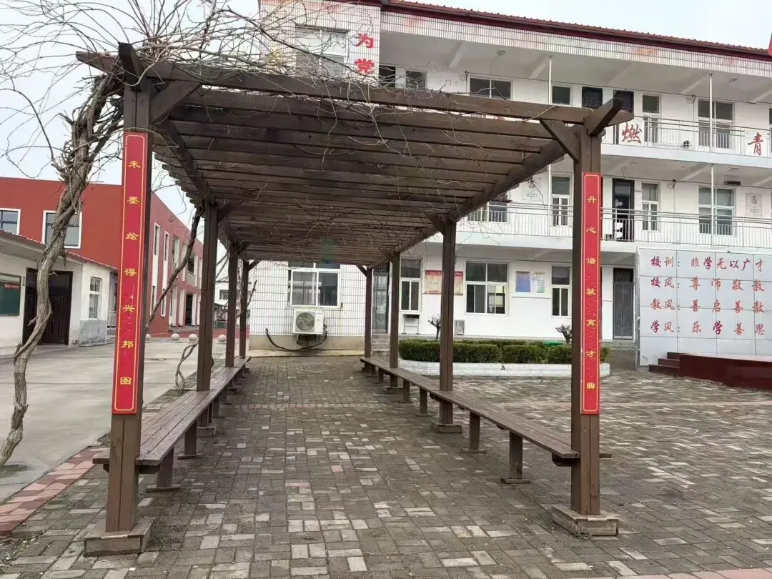 校园的每一处角落,都藏着独有的诗意与力量。操场边的雪松,如沉默的守护者,用年轮诉说着时光的故事;廊下的翠竹,挺拔苍翠,象征着君子的气节与坚韧;木质长廊的对联“朱墨绘得兴邦图,丹心谱就育才曲”,道尽了教育者的初心与使命。