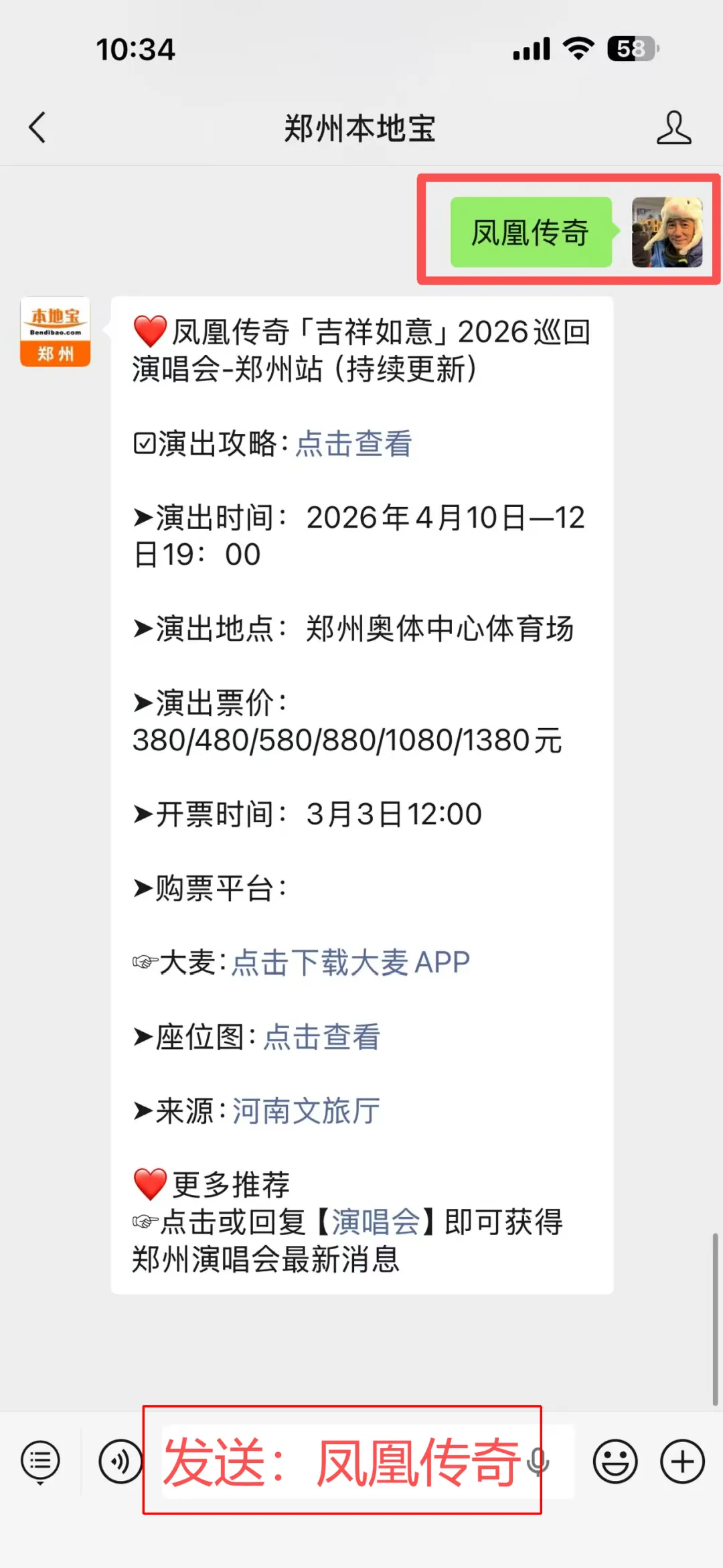 ✅购票入口:大麦,大家可以点击左下角郑州本地宝头像,私信发送【凤凰传奇】,获取购票入口、演唱会最新消息