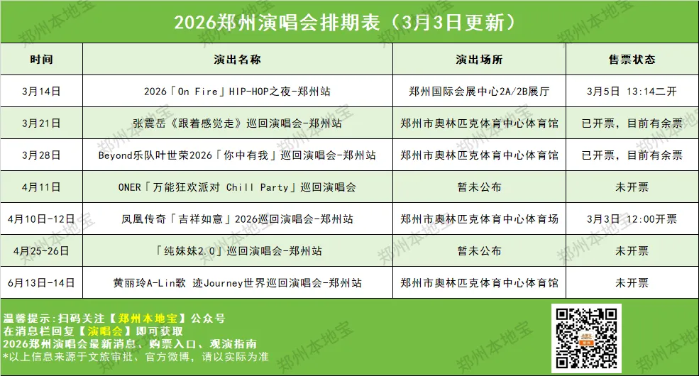 郑州演唱会的最新排期表(3月3日更新)