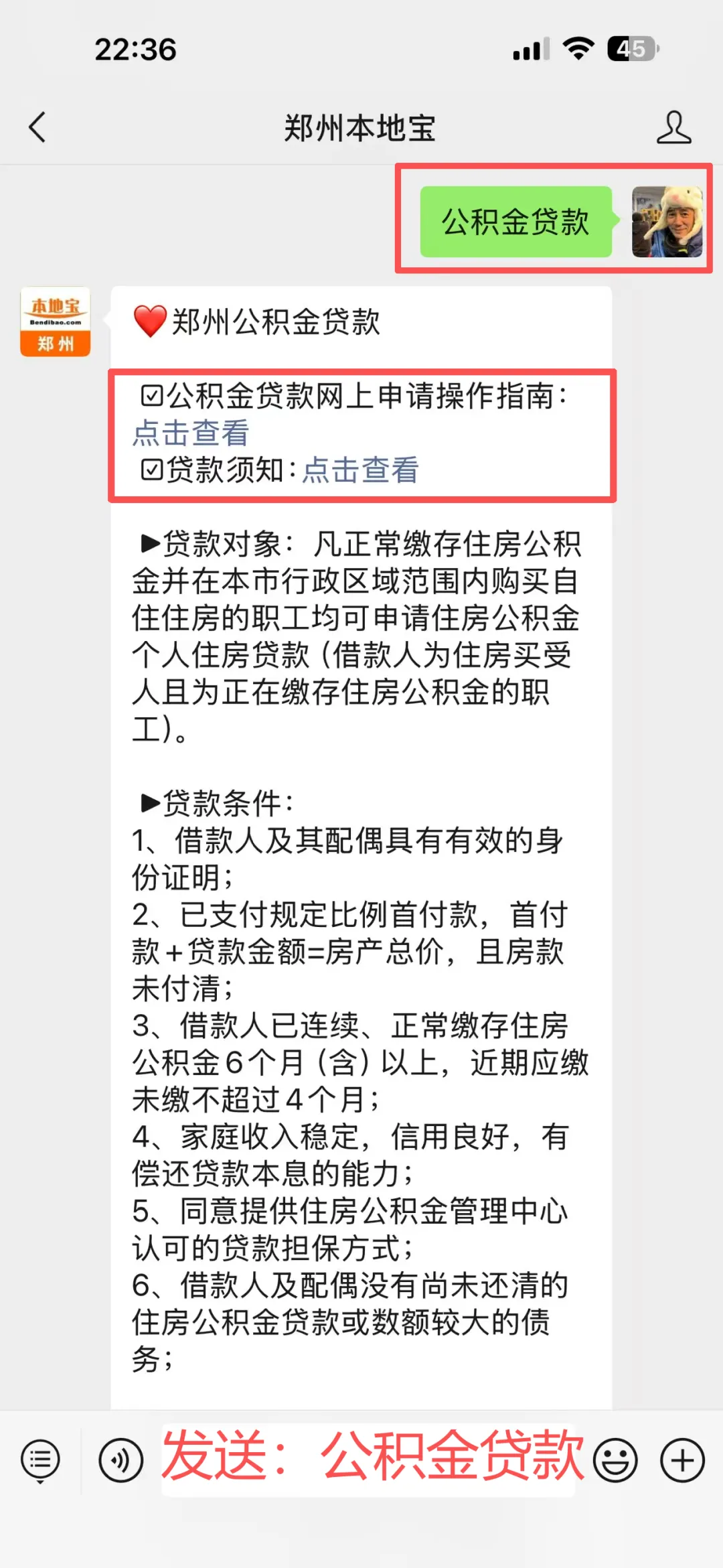 聊天对话框发送【公积金贷款】