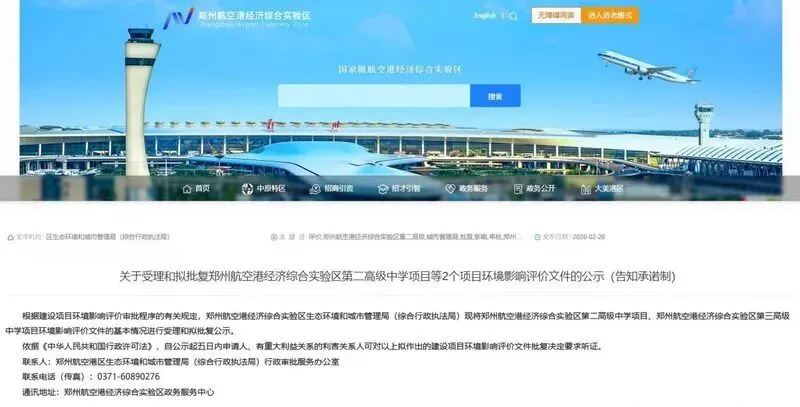 目前,两所新建中学项目的环境影响评价文件已获郑州航空港经济综合实验区生态环境和城市管理局(综合行政执法局)受理,并进入拟批复公示阶段。根据规定,相关方若对拟作出的批复决定有异议,可申请听证。