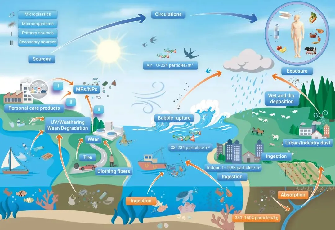 微塑料和纳米塑料的环境来源于两个方面:一类是在日常生产和生活中直接释放出来的微小颗粒,例如化妆品、合成纺织品和清洁用品;另一类则来自塑料垃圾,在阳光、摩擦和化学作用下逐渐老化、破碎形成。这些颗粒已遍布全球海洋、淡水、土壤及大气环境中,其中室内空气中的含量通常显著高于室外。